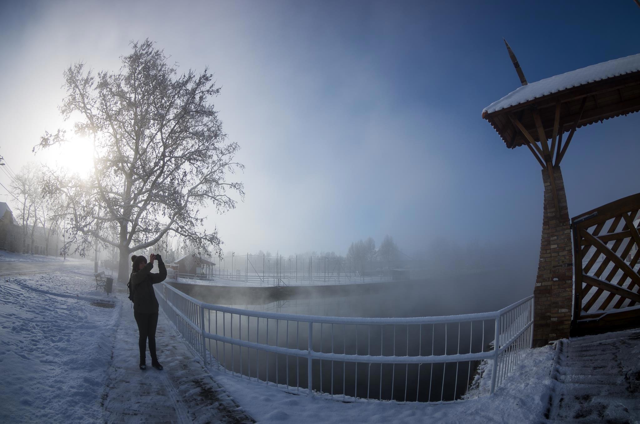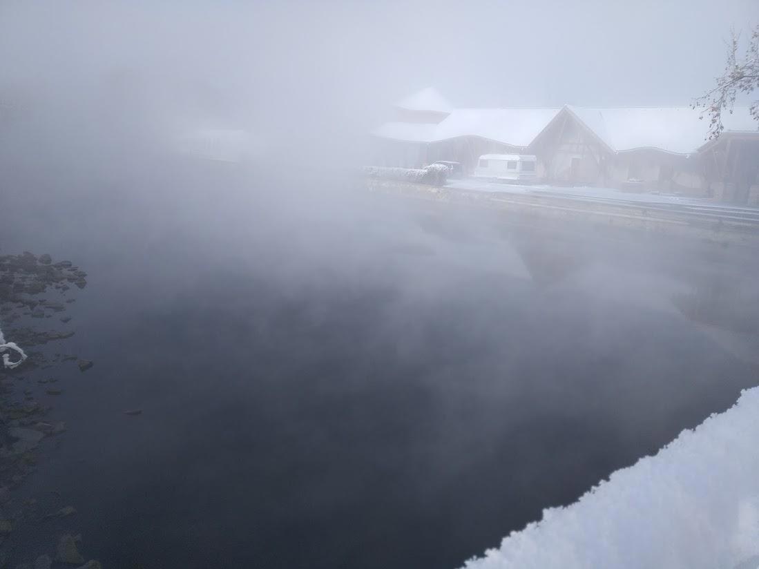 Дымка пара над горячим источником. Тепло или холод — кто кого?