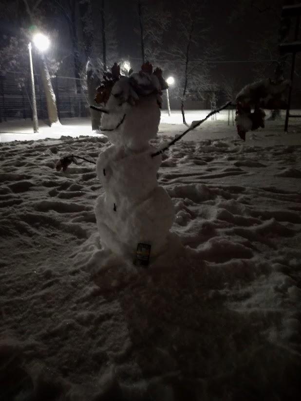 Снеговик. Курящий, по-видимому. Нет, не моих рук дело, я не курю. Вообще. Даже не пробовала никогда.