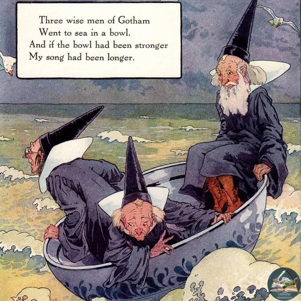 Согласно легенде, жители Готэма, узнав о планах короля поселиться неподалёку и прикинув свои расходы на содержание его двора, решили притвориться дураками перед королевскими послами. Для этого селяне предавались бестолковой работе, например, топили угря в луже воды или строили изгородь вокруг сидящей на кусте кукушки, и король в итоге выбрал другое место для домика.