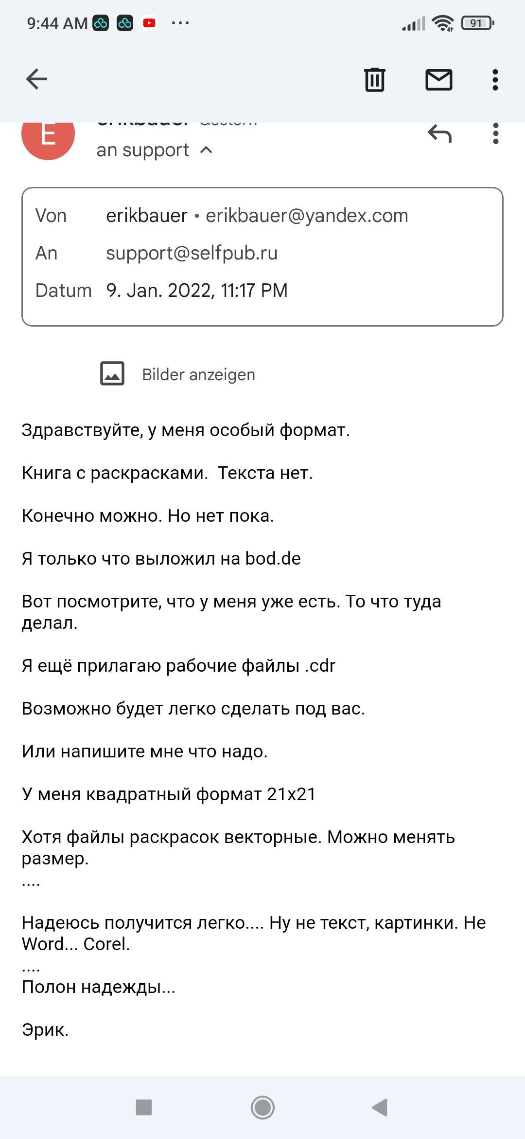 Автор: Erik BauerНаписал Я в ЛитРес Selfpub по поводу публикации своих раскрасок. Речь идёт именно о страницах без текста с ЧБ иллюстрациями для раскрашивания.