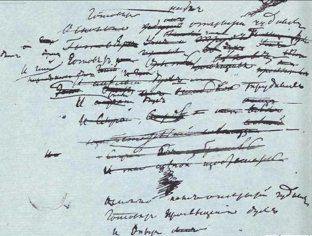 Но вернёмся к творчеству Пушкина. При жизни великого поэта этот стихотворный фрагмент никогда не публиковался по той простой причине, что Александр Сергеевич его не окончил. Более того, можно сказать, что в данном виде Пушкин это пятистишие не писал, или, точнее, не дописал! Оно — плод исследований пушкинистов XIX и XX веков.