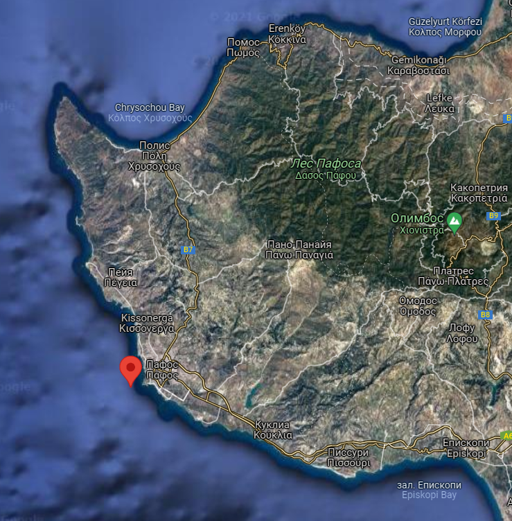 Место у западного побережья Кипра, где затонул эсминец "Kocatepe".