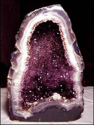 Жеоды, наполненные кристаллическими друзами из самоцветов, являются наиболее ценными для коллекционеров. Такие минералы уже используются не как украшения, а в качестве музейных экспонатов. Особой популярностью пользуются жеоды с аметистами. Они будто пещеры из волшебных сказок, наполненные прозрачными кристаллами. Самые крупные их представители сохранены на месте обнаружения в виде природных достопримечательностей. Кстати, название «аметист» происходит от древнегреческого языка и обозначает «неопьяняющий», то есть согласно древнему поверью камень может предохранить своего хозяина от пьянства. В древнешумерских таблицах указано, что данный камень может вызвать любовь к дарителю, даже если до этого получатель не испытывал никаких чувств к нему. Поэтому женатым и обрученным людям не стоит принимать в подарок украшения с аметистом от посторонних.
