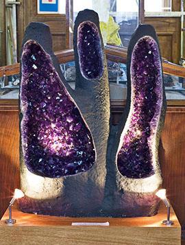 "Трехглавая" аметистовая жеода в Москве в Минералогическом музееимени А. Е. Ферсмана.Высота 93 см, масса 164 кг. Найдена в Бразилии.