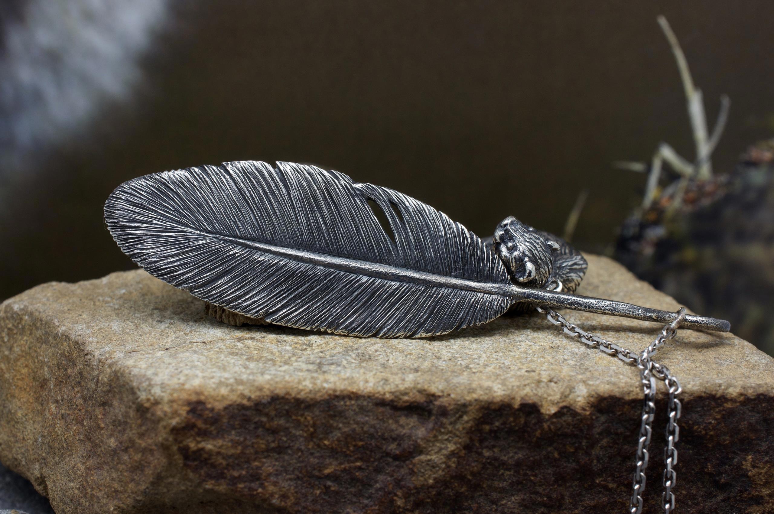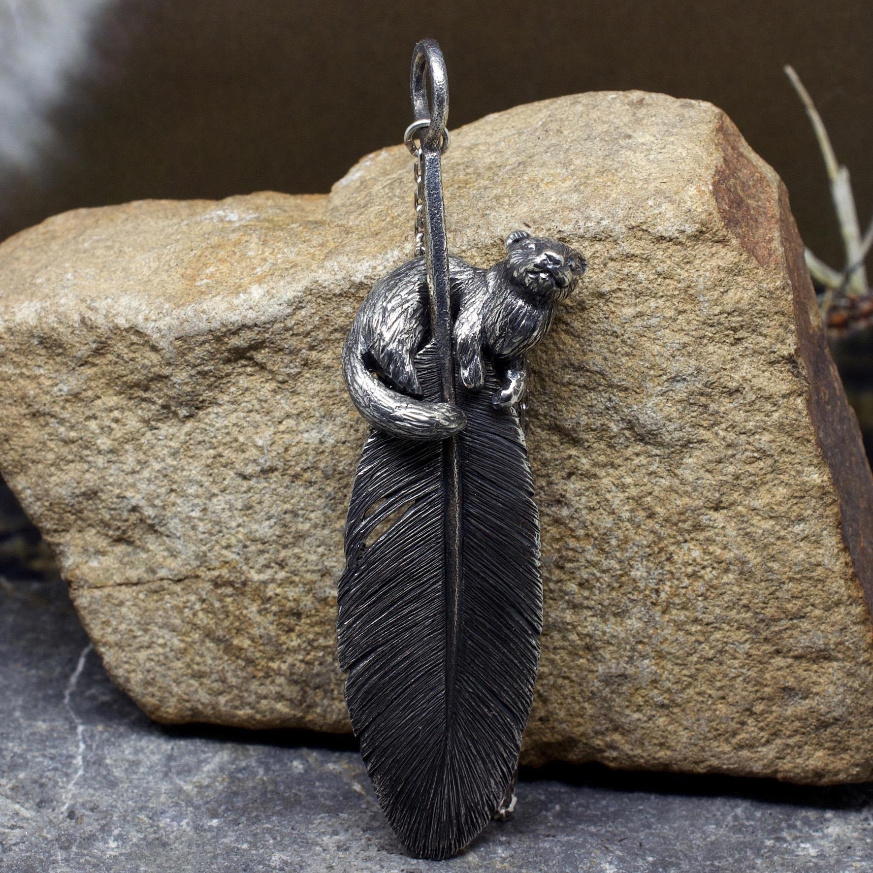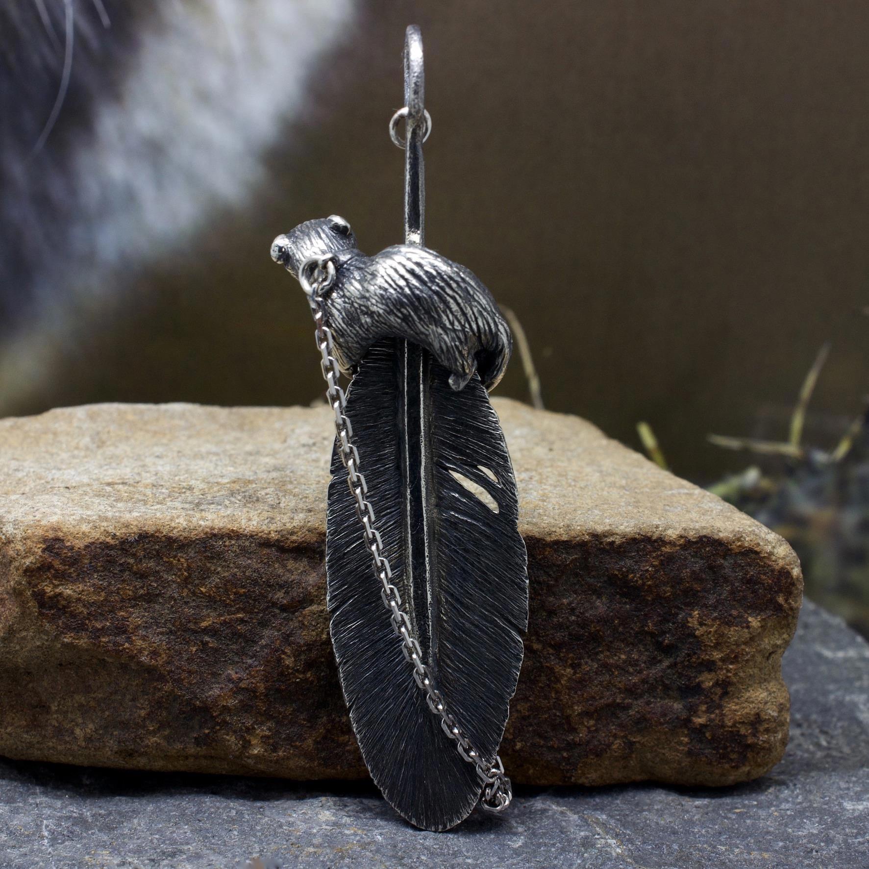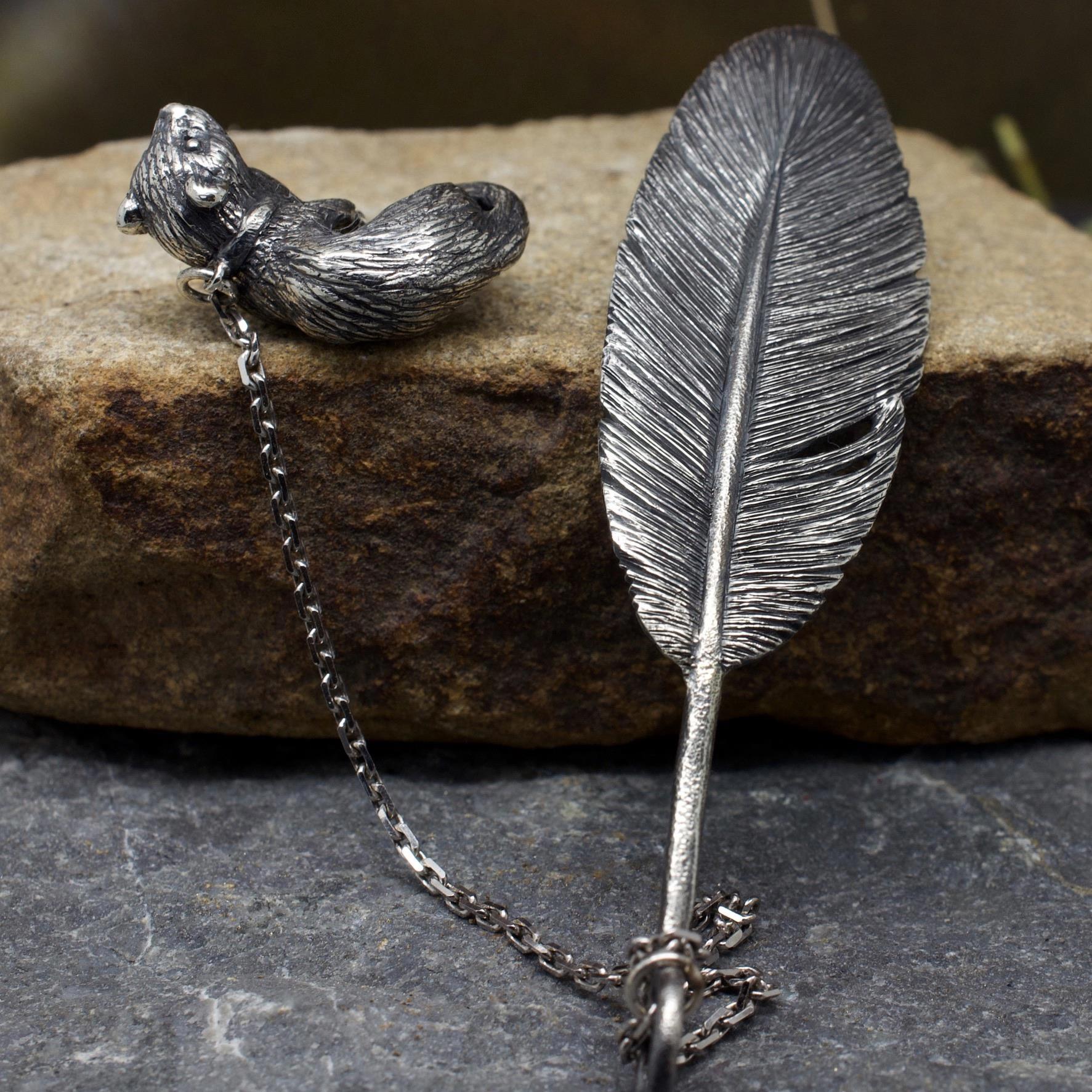 Именно он создал те серебряные бусины (пару сов, пару хорьков, пару бусин с грибами), которые украшают этот огромный ловец с перьями ворона. Фотографии тех бусин, лучше смотреть в том посте. Вообще же Алексей делает совершенно уникальные вещи.