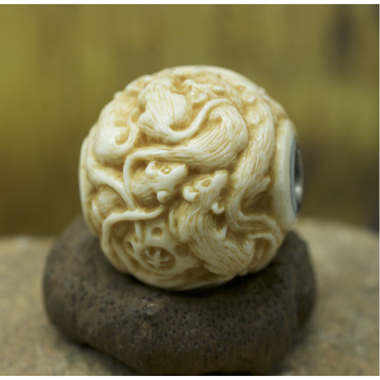 Я серьёзно. Нет, кроме этого, он, конечно, режет ещё и.... бивень мамонта, зуб кашалота, клык моржа, зубы животных, чёрное дерево, орех тагуа, делая из всего этого нэцке, окимоно, бусины одзимэ, чётки, кулоны и прочие украшения...