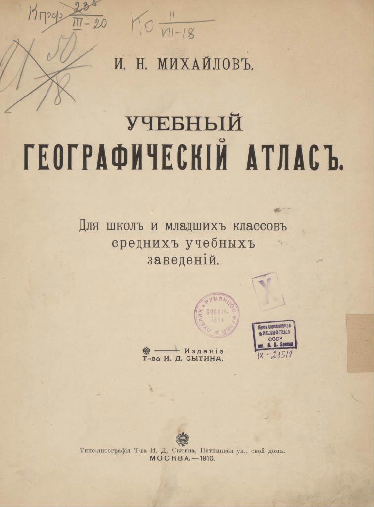 1910. Учебный географический атлас для школ и младших классов средних учебных заведений.