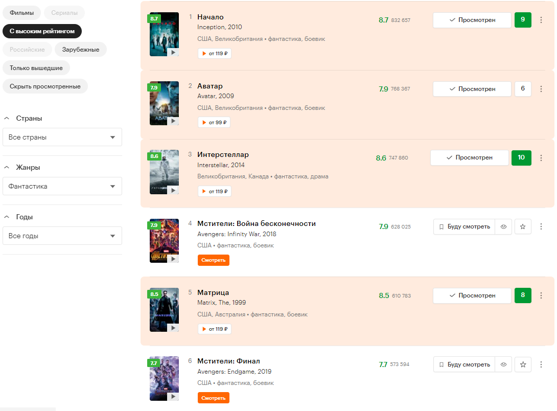 Вывод: если я ищу кино, которое лично для меня станет образцом классики, я могу смело идти в топ, и где-то в середине первой двадцатки её найти. Если я хочу более новое, но интересное кино, я всё ещё могу обратиться к первой тройке.