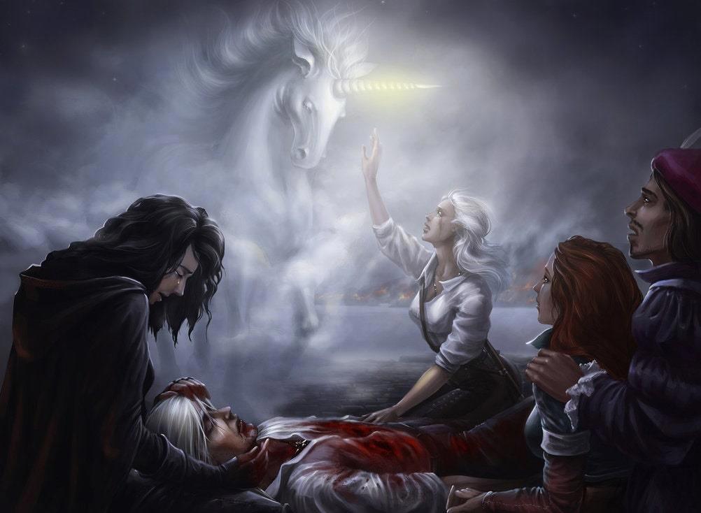 Но монополия на уникальные способности умных животных никого не устраивала. Эльфы поссорились с единорогами и решили создать существо с такими же возможностями, но подконтрольное им. Для этого эльфийские генетики провели эксперимент, который даст свои плоды только через сотни лет. Но конечные результаты эксперимента в саге не озвучены, поэтому опустим их.