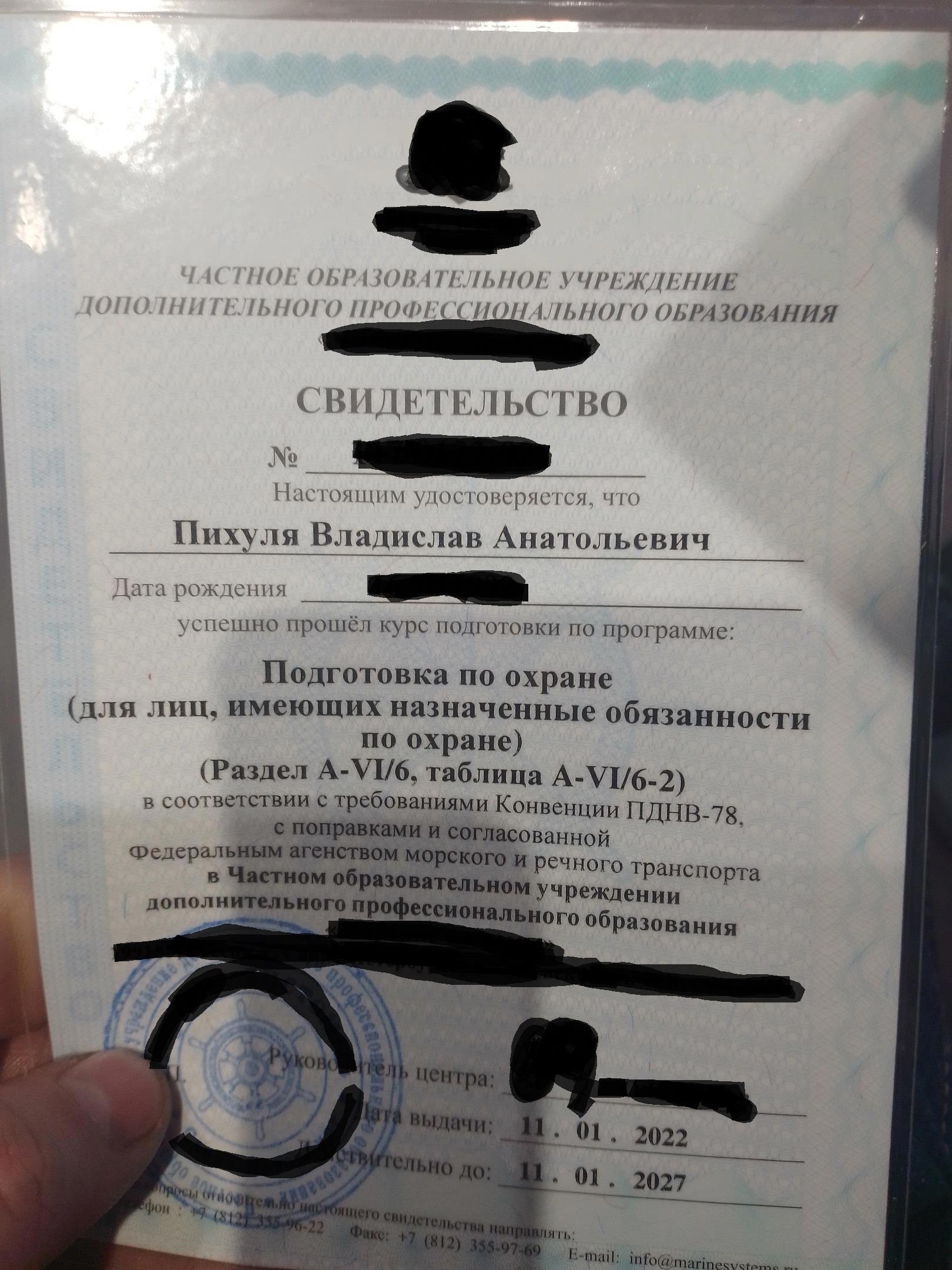 Автор: Владислав ПикуляЗдравствуйте друзья. Хочу поделиться новостями. Недавно закончил очередные и последние курсы. Всё, на этом получение сертификатов закончилось. Но, теперь надо получать другие справки, работа пока ещё далека от завершения, примерно половина выполнена только. На этих занятиях нам рассказали как вести себя при атаке пиратов на судно или при каких либо других опасностях. Вот сама документа