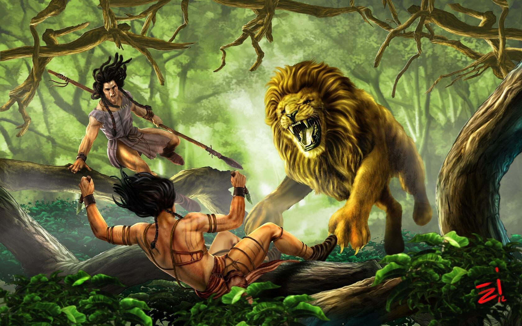 Лев сделал последнюю попытку, и древко вырвалось из рук Тарша. Зверь решил уйти, но застрявшее в рёбрах копьё, волочась по земле, доставляло неимоверную боль. Сделав несколько шагов, он упал. Подскочивший всадник метнул в него дротик, а набежавшие следом воины, принялись колоть копьями.