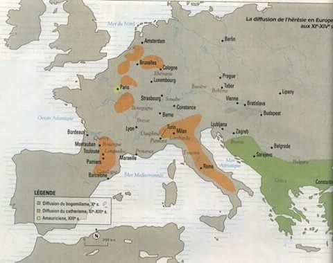 Карта распространения Катаризма и Богомильства в Европе 11-14 веков.