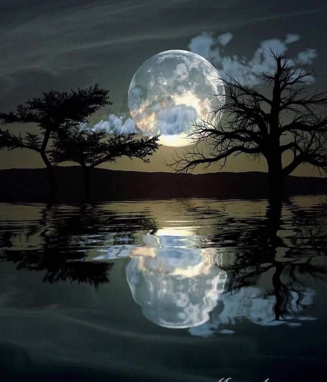Полная Луна на берегу океана
