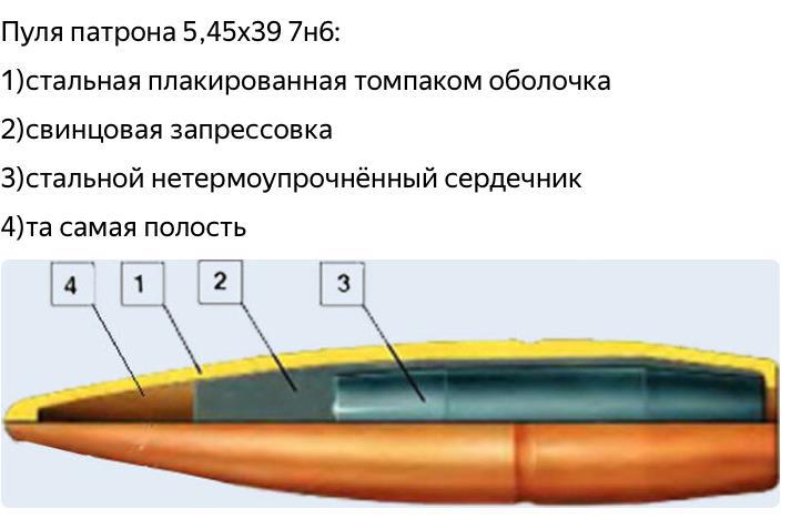 А ещё стандартная армейская "общевойсковая" пуля патрона 7н6 очень любит "раздеваться" в преграде,образуя массу вторичных поражающих элементов.