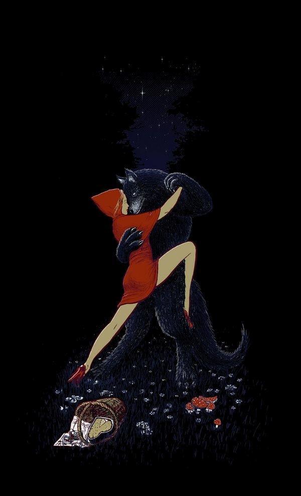 – Бабушка, почему тебя на груди так много шерсти?Волк на это честно отвечает, что так ему удобнее дорогую внучку обнимать, догонять и согревать. А когда дело доходит до больших зубов, волк не выдерживает и вспарывает своей милой подруге шейку. Видимо, бабушки ему не очень досталось за обедом.