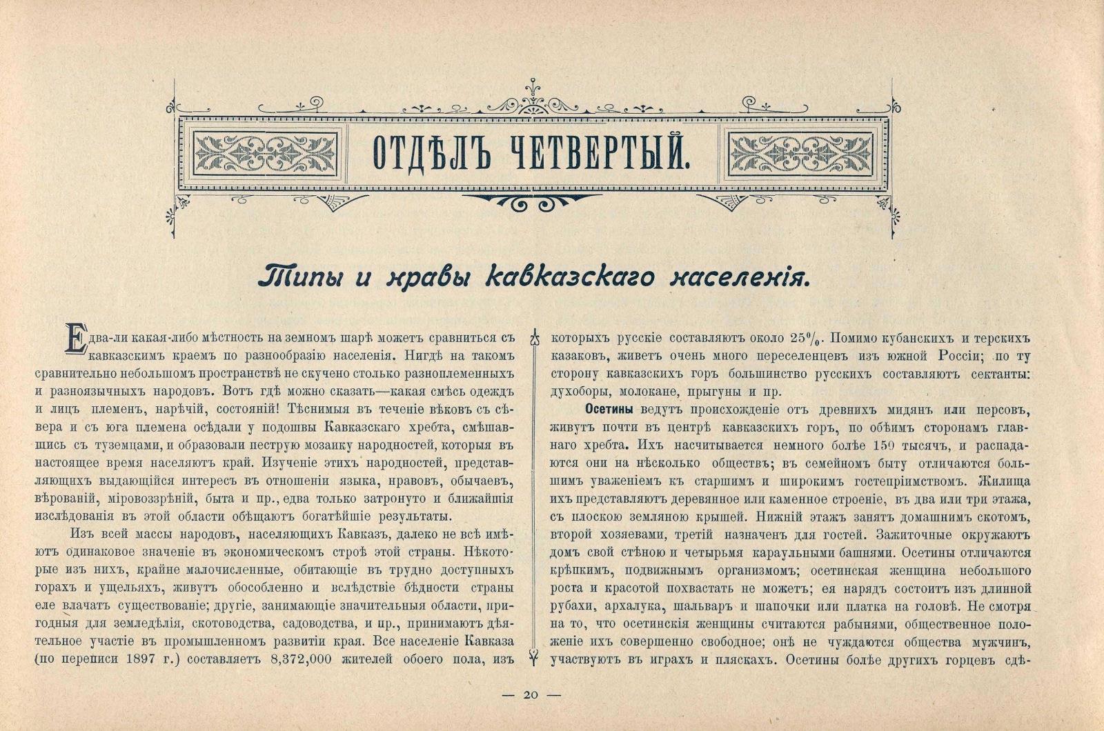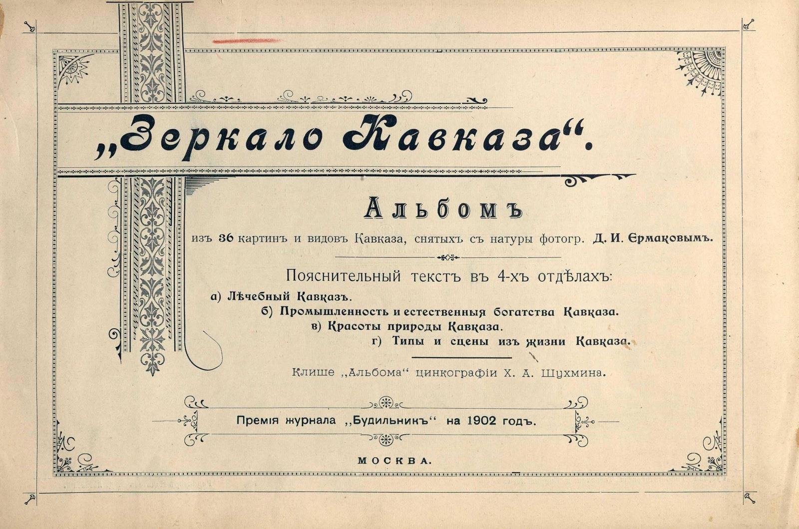 1902. Зеркало Кавказа. 36 картин и видов Кавказа, снятых с натуры. Пояснительный текст в 4 отделах.