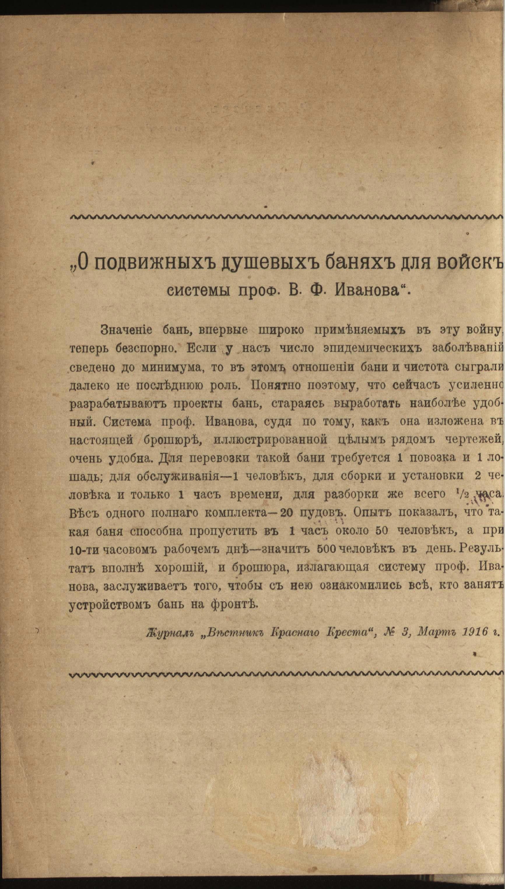 В общем, каждый пишет о своём, а снабженец - о бане. О подвижных полевых банях в Красной, Советской и Российской армиях известно практически всё. Есть и фотографии, и описания, и отзывы тех, кто имел своеобразное счастье, в них мыться. О том, что подвижные установки были в Русской императорской армии до революции мне стало известно только пару лет назад. Увидел на одной из выставок книжечку, которую хочу предложить и вашему вниманию, загорелся желанием найти её в сети, но и эти поиски не увенчались успехом. Видимо, всё же мой поисковик редкостный лентяй.