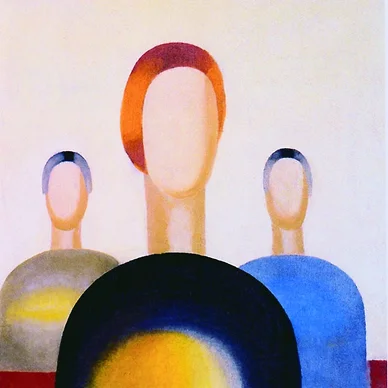 Демонические глаза "Отдыхающей пары", эти же "три фигуры" и ещё некоторые работы учеников Малевича, "усовершенствованные" умельцами в фотошопе, из интернета , видимо, были удалены. По крайней мере, я найти их не могу. Буду не прочь принять найденное на страницу блога.