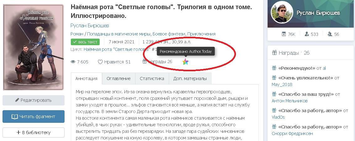 Автор: Руслан БирюшевАдминистрация сайта AuthorToday включила сборник из всех частей трилогии "Наёмная рота "Светлые головы" в виджет "АТ рекомендует"!