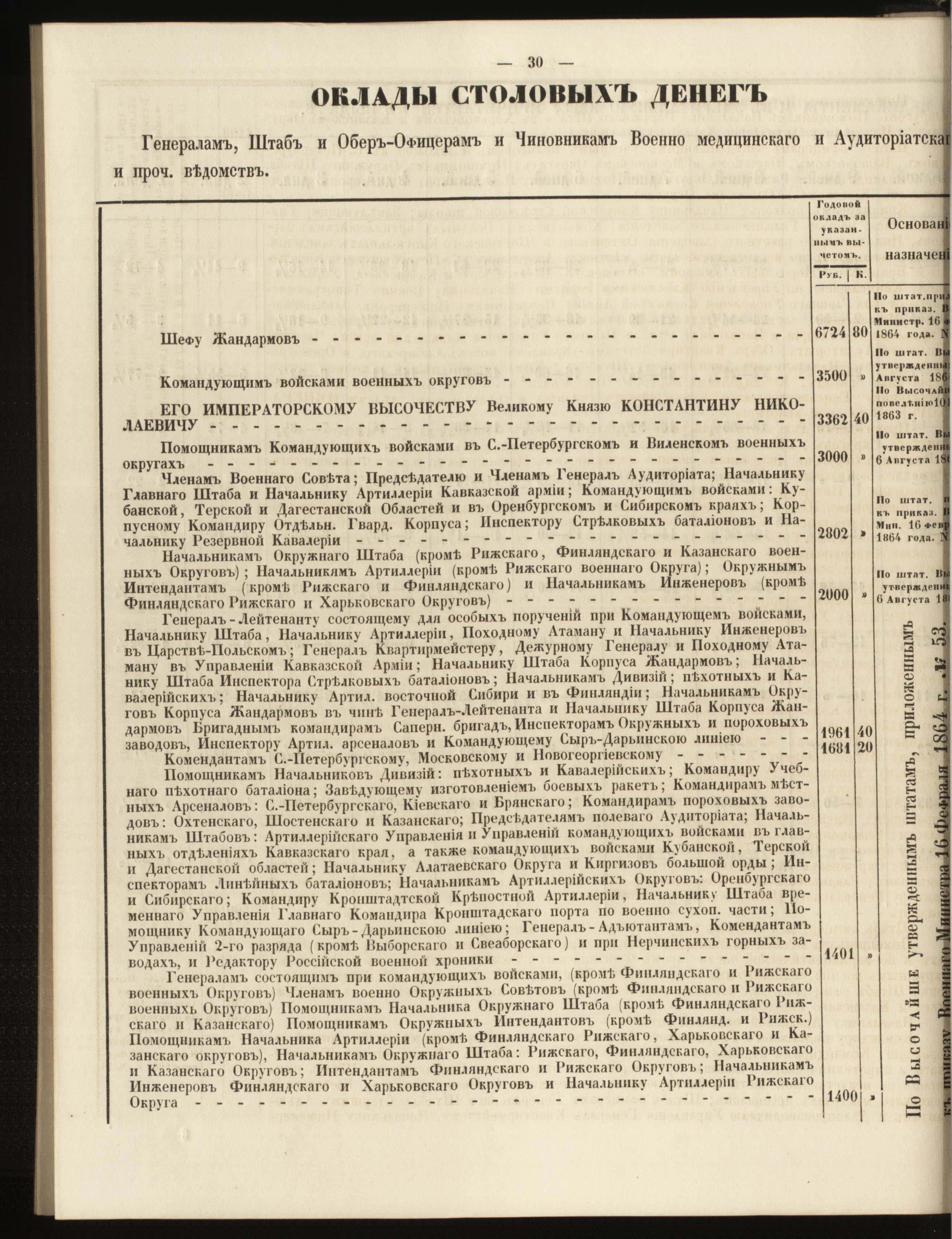 Жалование генералов и офицеров Русской императорской армии в 19 веке.