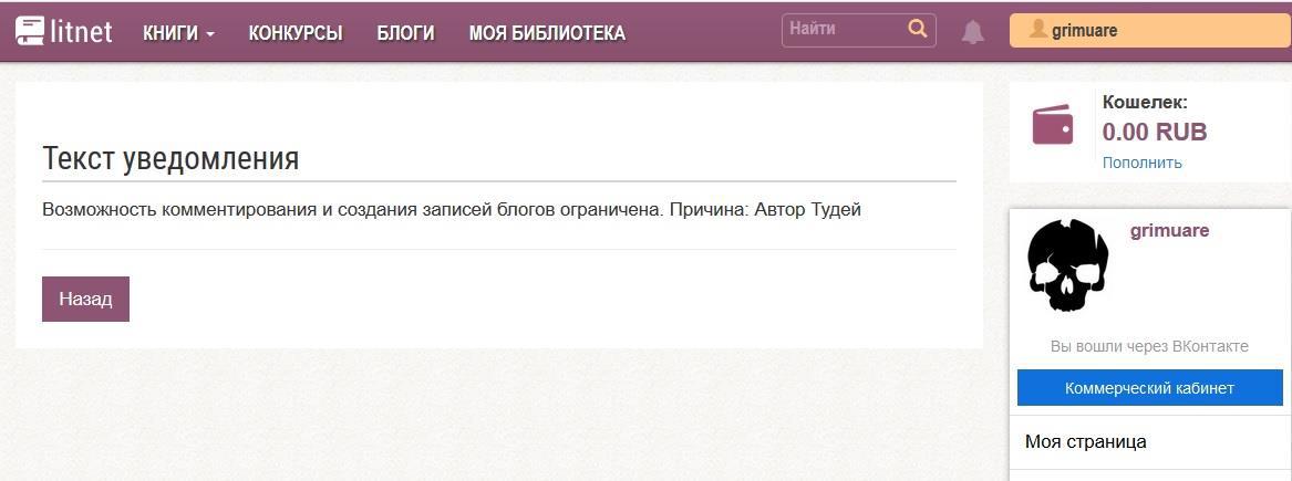 Автор: grimuareВот это вот меня встретило по заходу на сайт литнета, немного апнул пост добавив переписку из емейлов