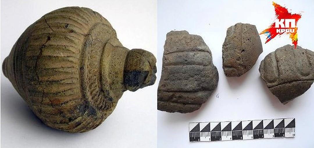 Однако есть ещё одна версия. Говорят, что это – оружие. Прообраз сегодняшних ручных гранат. И вот именно здесь всё вроде бы сходится – и количество, и качество, точнее его отсутствие. Остаются детали. Те самые, в которых прячется дьявол. Дело в том, что датировка самых ранних изделий такого куда древнее, чем первые известные упоминания о порохе. Оружейная версия также подтверждается ещё одной находкой в наших краях. Однажды во время раскопок был обнаружен такой сосуд с фитилём, вставленным в горлышко. Так чем же снаряжали эти самые первые ручные гранаты? Хотя сам термин появился значительно позже. Говорят, что первым использовал такое название «граната» или «гранадина» оружейник Себастьян Геле из Зальцбурга в 16 веке. И этот термин уже, по-видимому, относился именно к разрывным гранатам, то есть, снаряжённым порохом, ведь природные гранаты действуют так же – падают, разрываются и далеко разбрасывают семена.