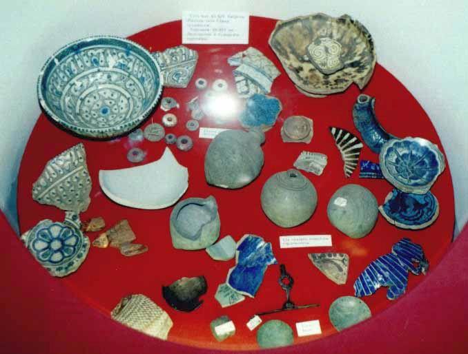 Или, например, не раскрашенные, но с различными рельефными узорами всё же. Вот такие, как вот эти, сделанные в 14 веке и найденные в наше время в городище Сарай-Берке: