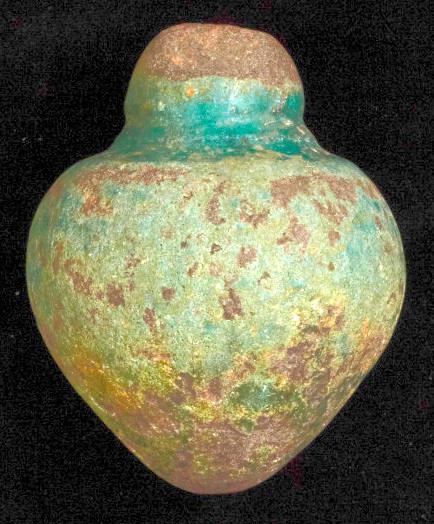 Общее у всех этих сосудов не очень много – очень небольшое отверстие, через которое можно что-то налить в них или насыпать. Горлышко тоже очень маленькое. Иногда его нет вовсе, как вот у этого, разбившегося на две части: