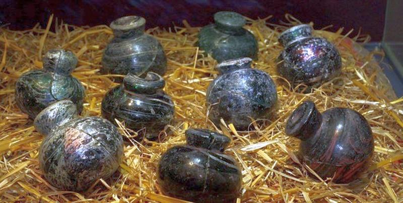 На юге Европы также есть интересные находки. Вот целая куча стеклянных сосудов с острова Лесбос: