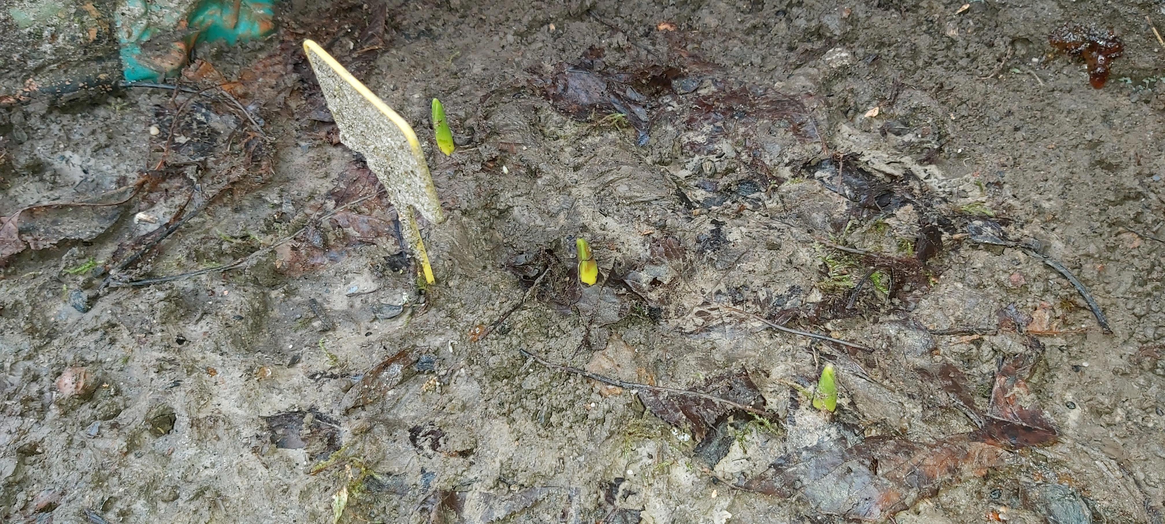 Сегодня решила и у себя листья убрать, что оставила в некоторых местах гнить. И вуаля, тюльпанчики взошли, почти везде, где посадила. (Хотя, не все места помню, где втыкала