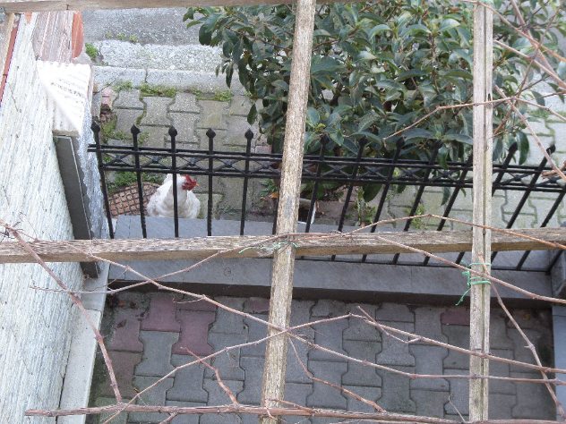 А тем временем вижу, за калиточкой-то курочка наша с лапки на лапку переминается. Уже пришла и ждет. Сасранья прям. И главное, стоит, в калиточку заглядывает, никуда не уходит. А тут и песик наш ее пронюхал и давай заливаться на нее. Не пойму, то ли ругается: