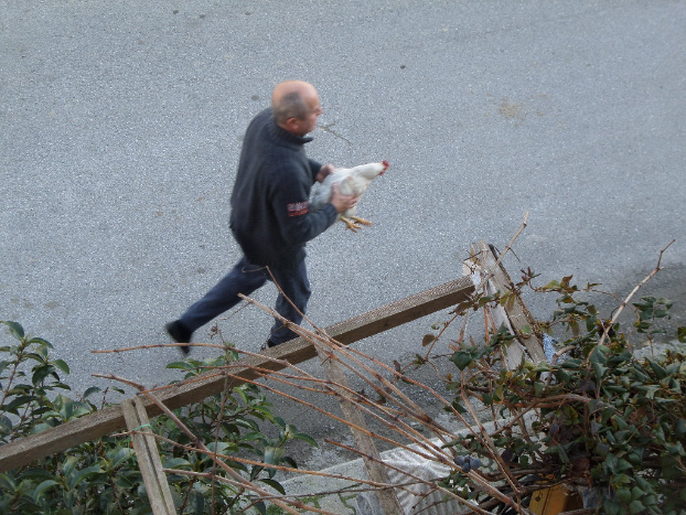 Ну, пошел муж. Блины раздал собакам и отправился за курочкой. А та как услышала его голос, заметалась. Не знает куда бежать, направо, налево? Где голос? А он вышел и встреча на Эльбе состоялась. Обнялись, как родные и пошли в обнимку назад, в курятник. Блин, я с них дурею.