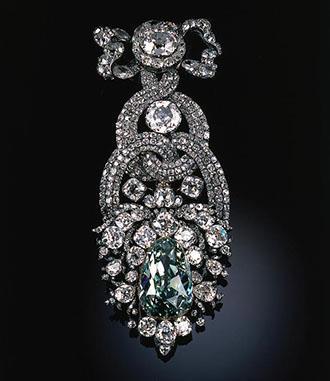 Аграф с «Дрезденским зеленым» бриллиантом весом 40,7 карата. Украшение. Дрезден. Середина XVIII в.