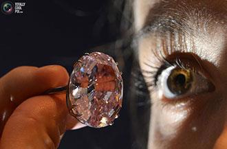Демонстрация перстня с бриллиантом Pink Star (Розовая звезда) весом в 59,6 карата.