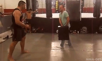 Лоу-кик, локоть в голову сверху, удар головой, лоу-кик/ маваши-по-бедру/в-бедро