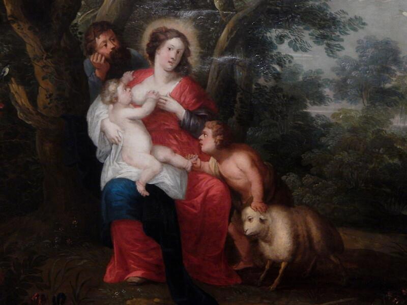 Автор: Элиза ГвиччиолиЭто не прикол и не фотошоп. Это "Святое семейство с маленьким Иоанном Крестителем" неизвестного художника 17-го века. Картина находится в музее Санта-Крус города Толедо.
