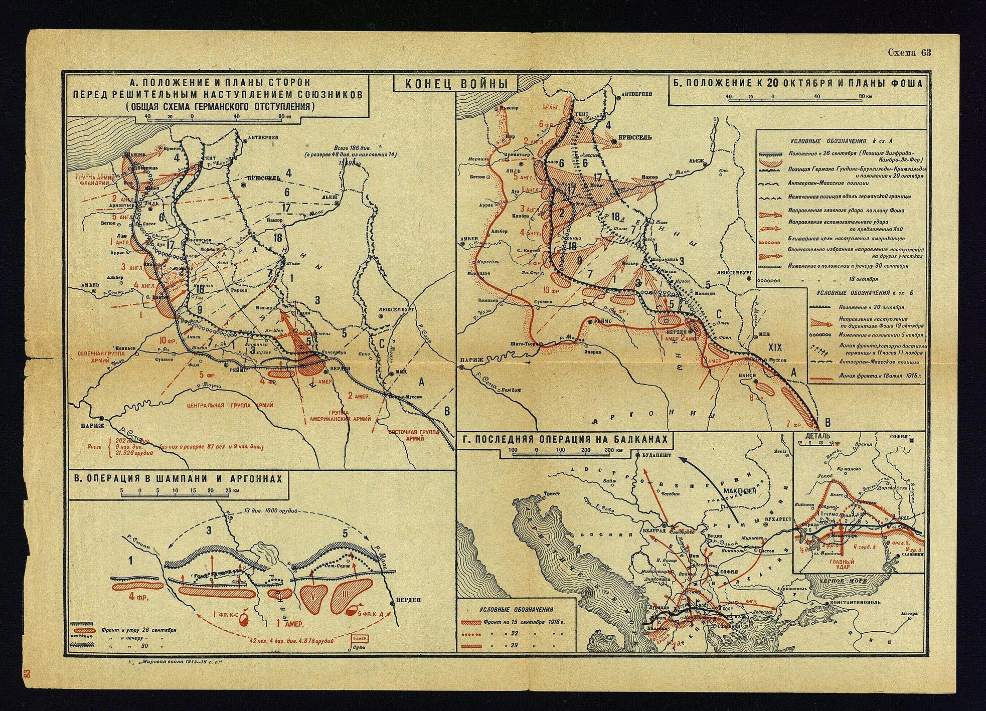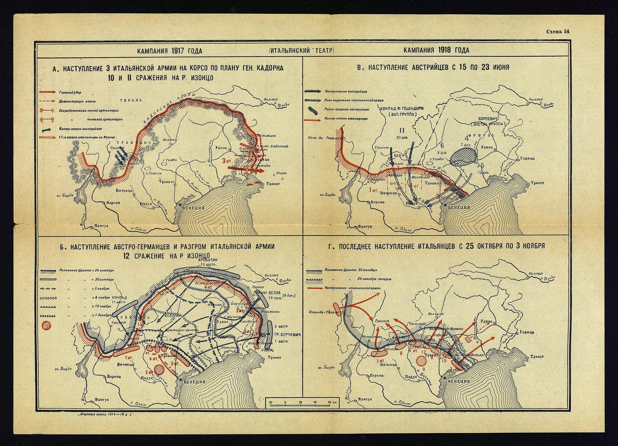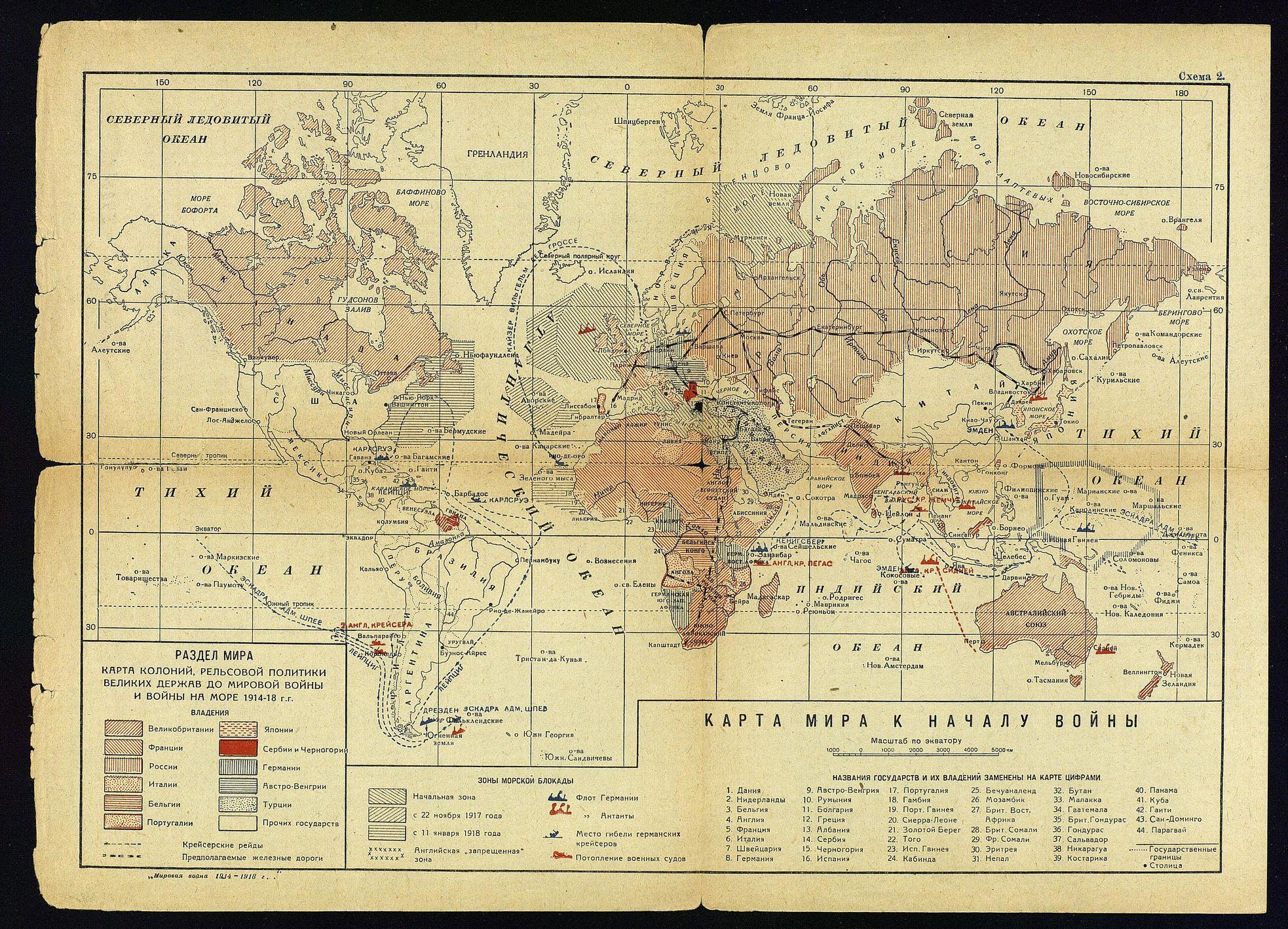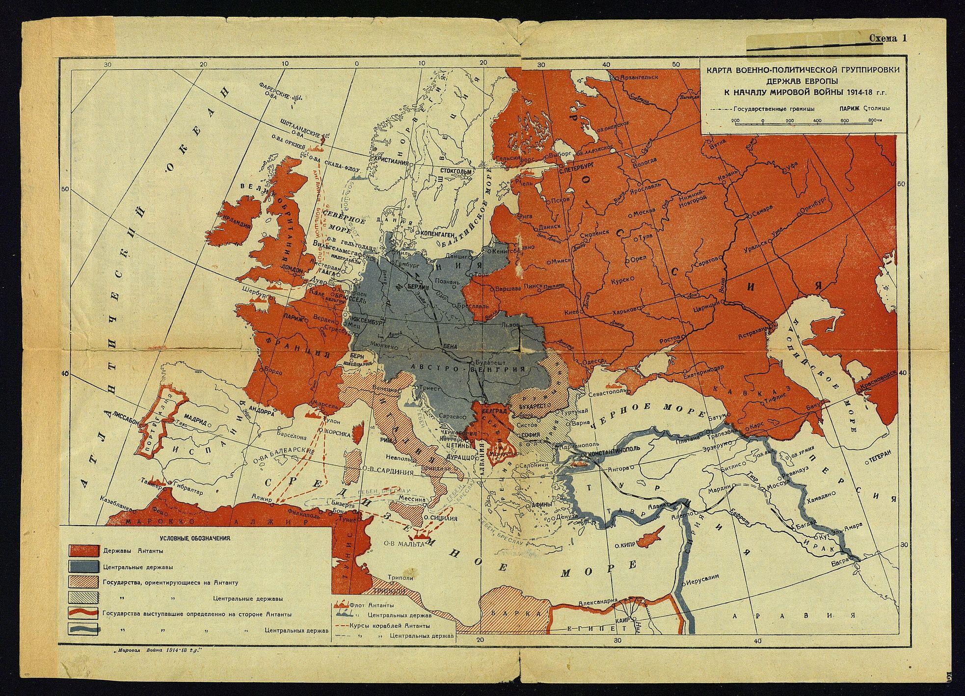 Первая Мировая война 1914–1918 годов в цветных картах-схемах.