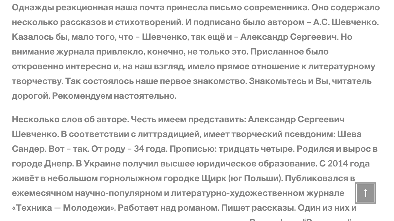 Мои рассказы публиковались в Москве, прям печатное издание, честное слово. (Есть видео в Инстаграме. Кстати, подписываетесь https://www.instagram.com/sheva_sander/, буду рад новым фолловером. Увы, ответную подписку не обещаю, статус «звезды» не позволяет). В Нью-Йорке мой рассказ «Прощение» понравился, но я получил отказ, потому что в связи с пандемией газете пришлось сократить количество страниц. Сейчас моё творчество охотно приняла в свои теплые объятия Одесса-мама.