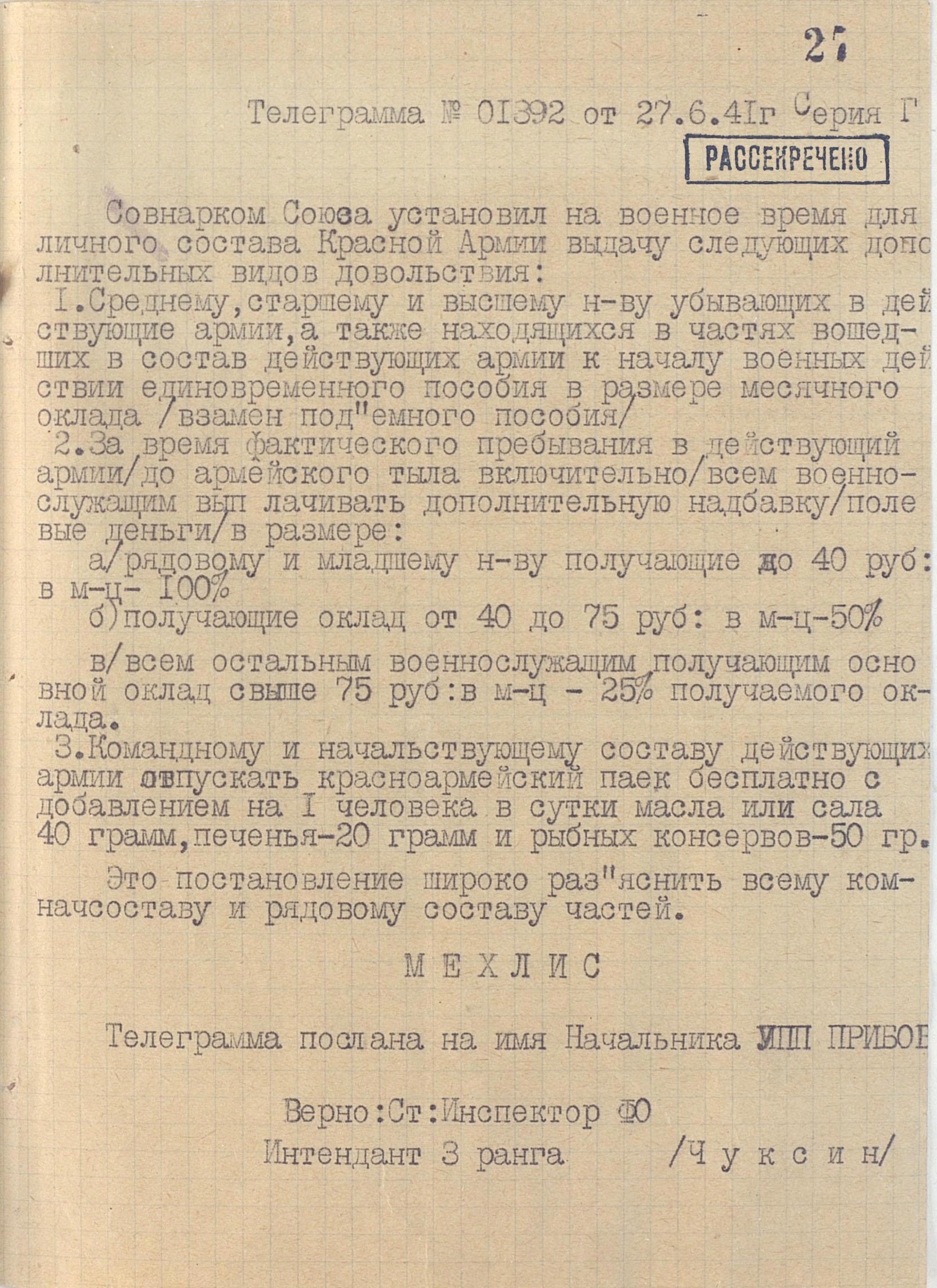 Для начала, ещё раз перечитаем телеграмму, в которой указана и категория довольствующих, и нормы этого доппайка: