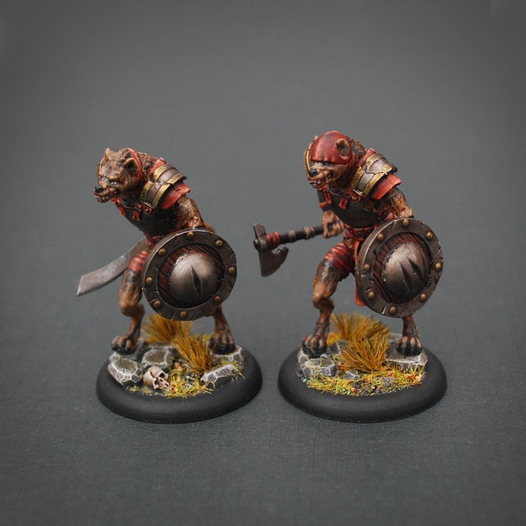 В игровых миниатюрах много своих нюансов. Например, вот эти царапины на щитах воинов или на наплечниках лучников, похожие на римские цифры (I, II, III, IV) на самом деле обозначают номера Гноллей, влияющие на очерёдность хода.