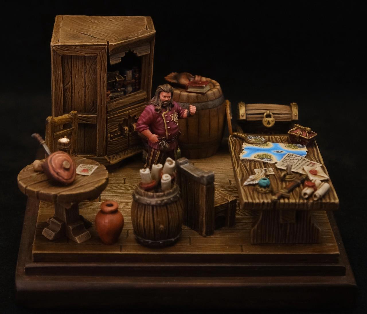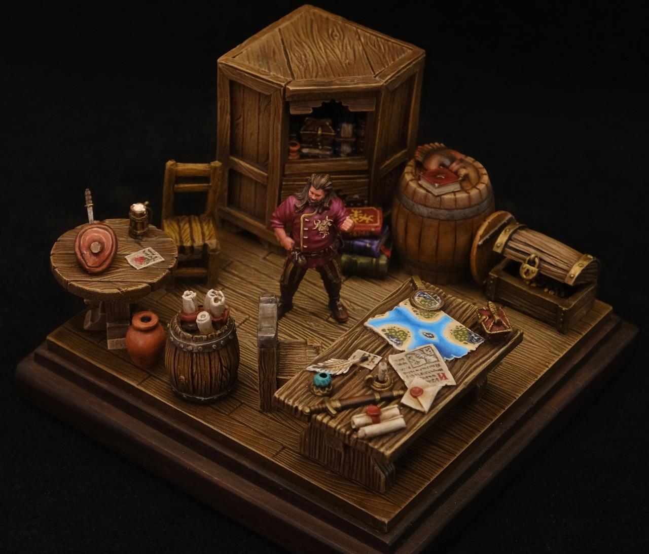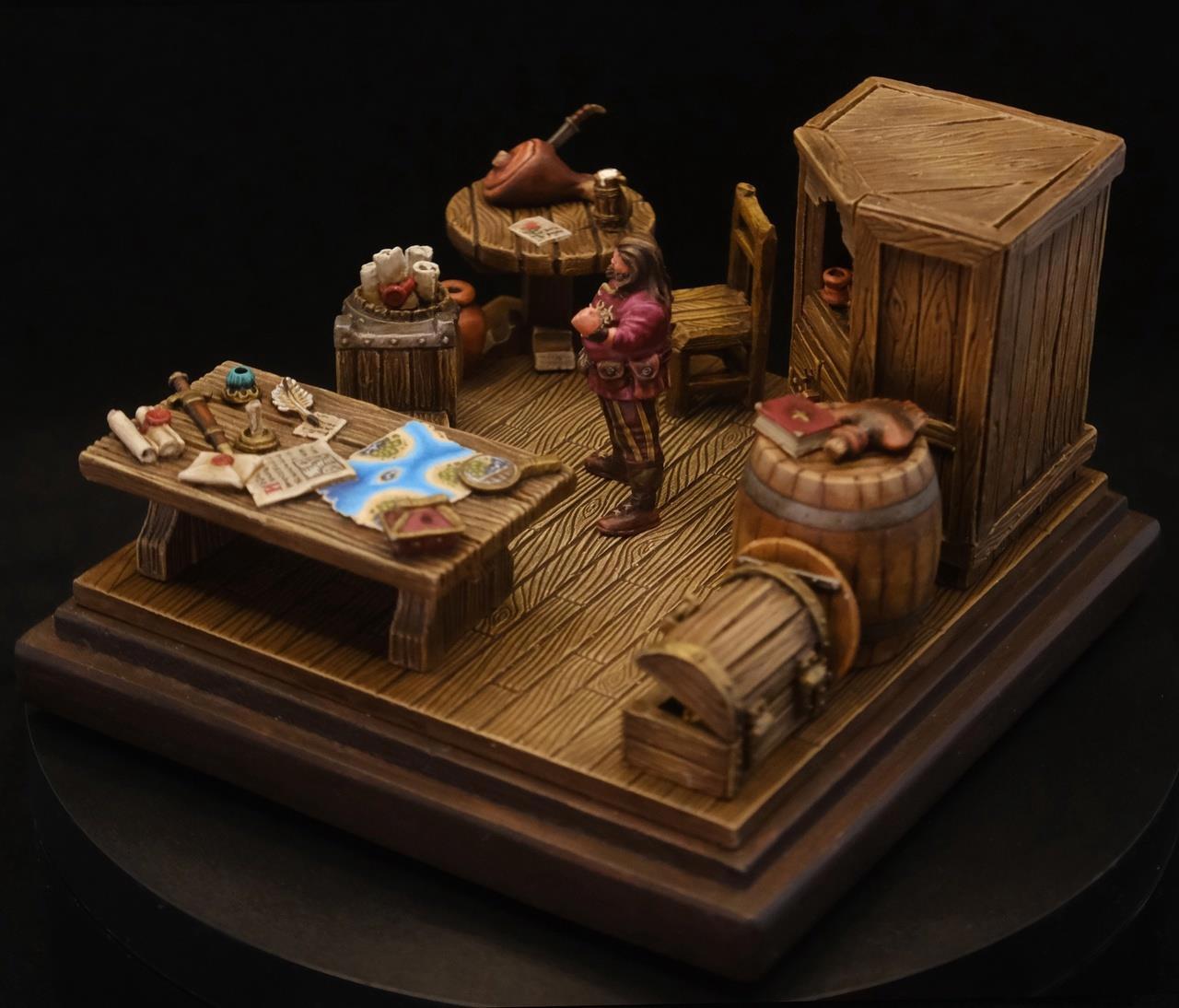 У моделистов для обозначения таких «штук» как на фото используется два слова: диорама и виньетка. Диорамой чаще всего считается масштабная композицию, объединенная сюжетом и антуражем. А виньеткой называют работы, представляющие собой нечто большее, чем просто фигурка на подставке, но в то же время отличающиеся от диорам меньшими размерами. Как они их различают — не знаю. Но знаю, что сам автор «сам Алексей Гренкин» называет свои работы виньетками: