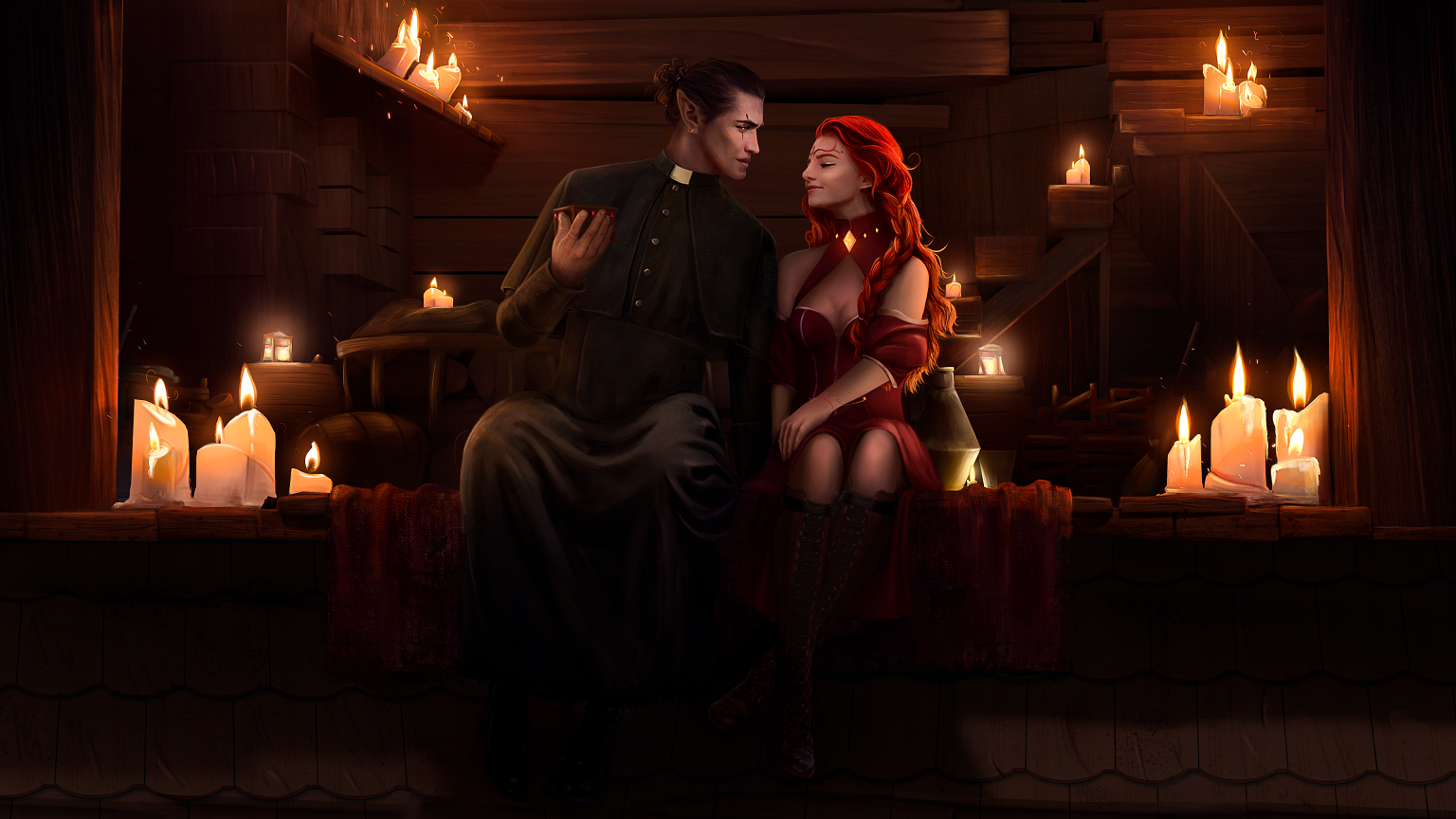 Автор: Рутен КоллинсХей-хей! Сегодня покажу, как рисовался арт по заказу по DnD: темный священник соблазняет молодую и невинную девушку.