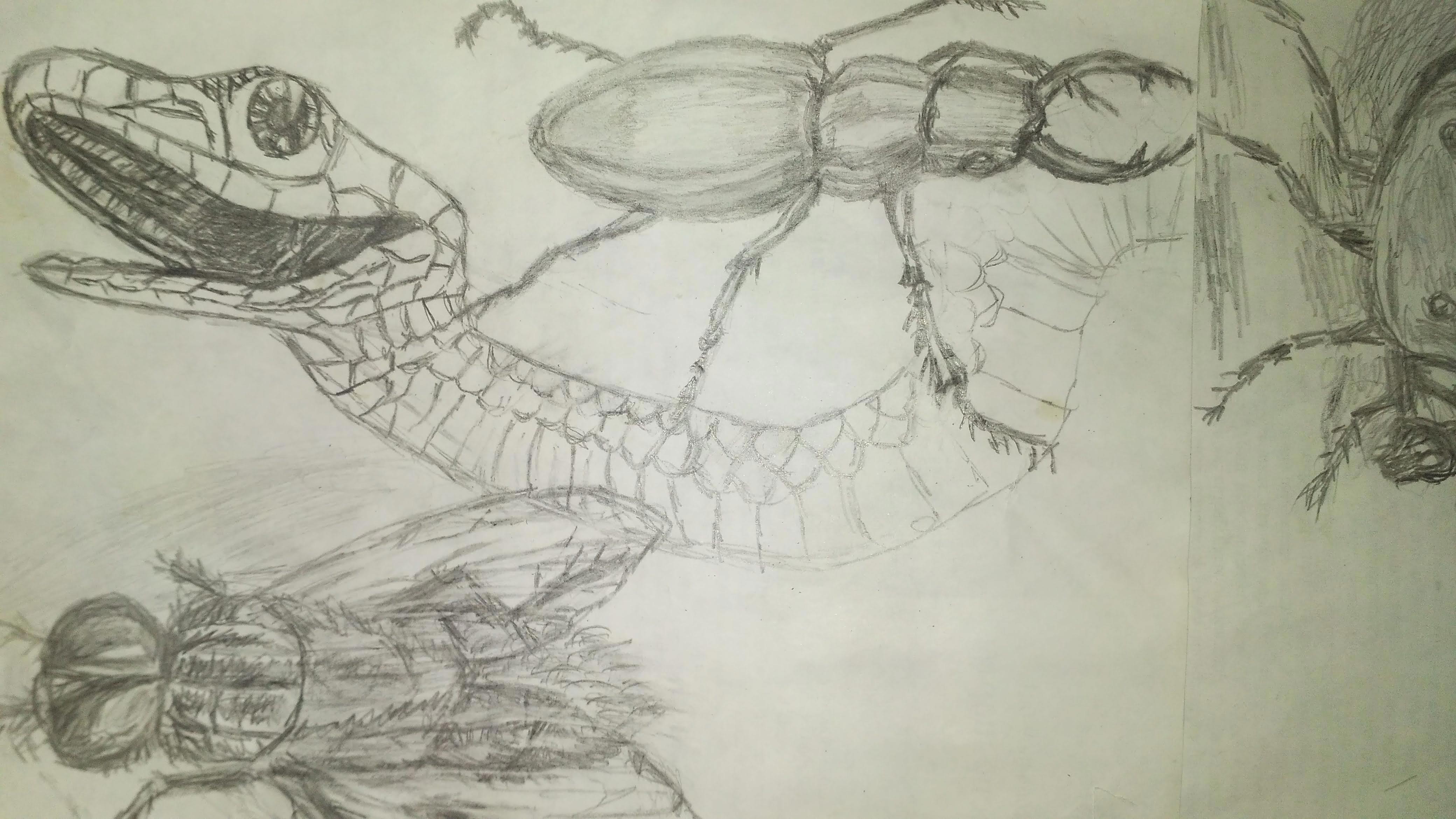 Там по сюжету через двести лет после войны, в далёком будущем, появились ужасные и кошмарные чудовища.... Переростки из насекомых и земноводных, как динозавры взяли и подросли. Вот что у меня получилось. Страшно или нет?