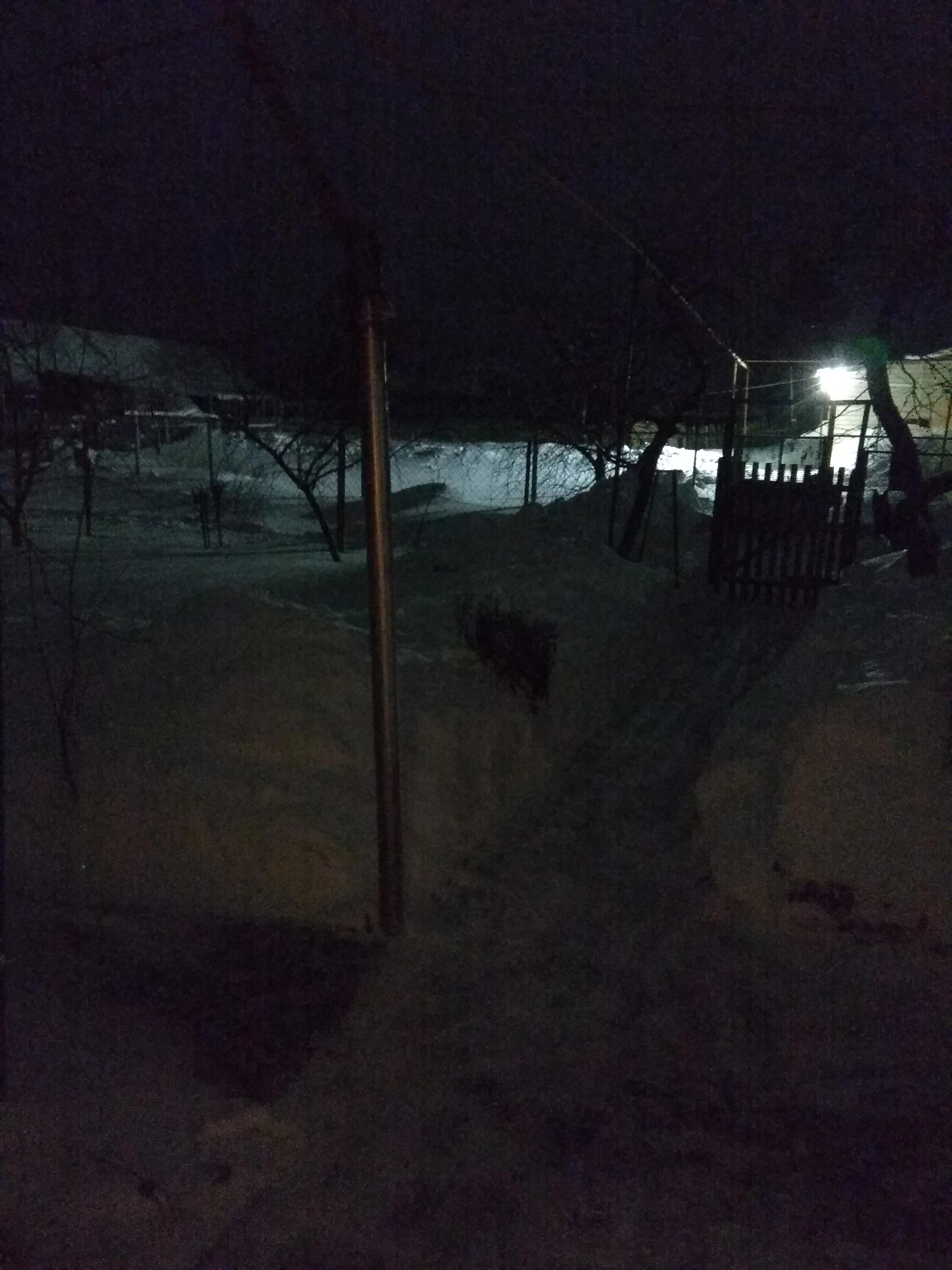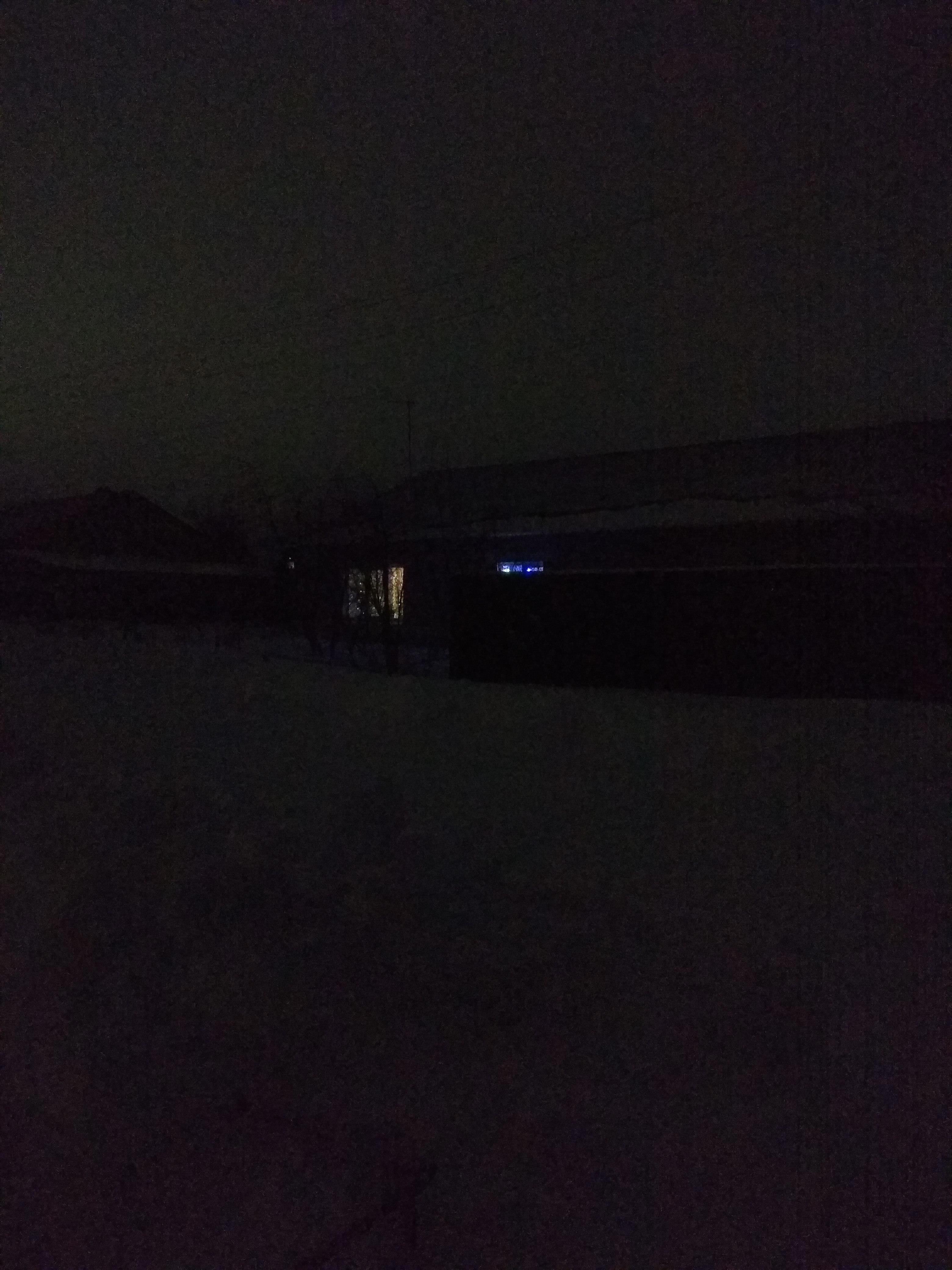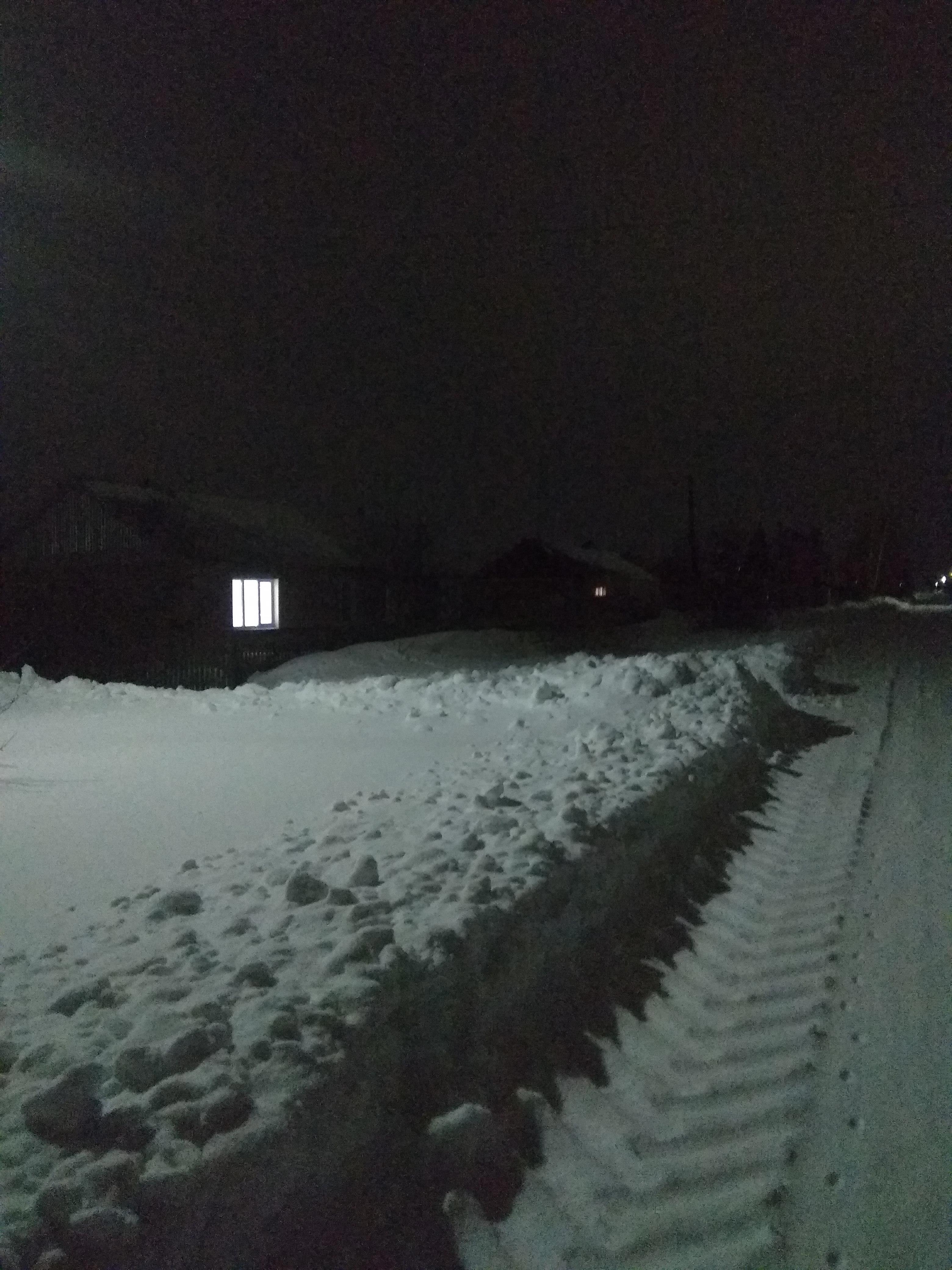 А это уже соседский дом и наш. Наш — дальше, соседское окно желтое.