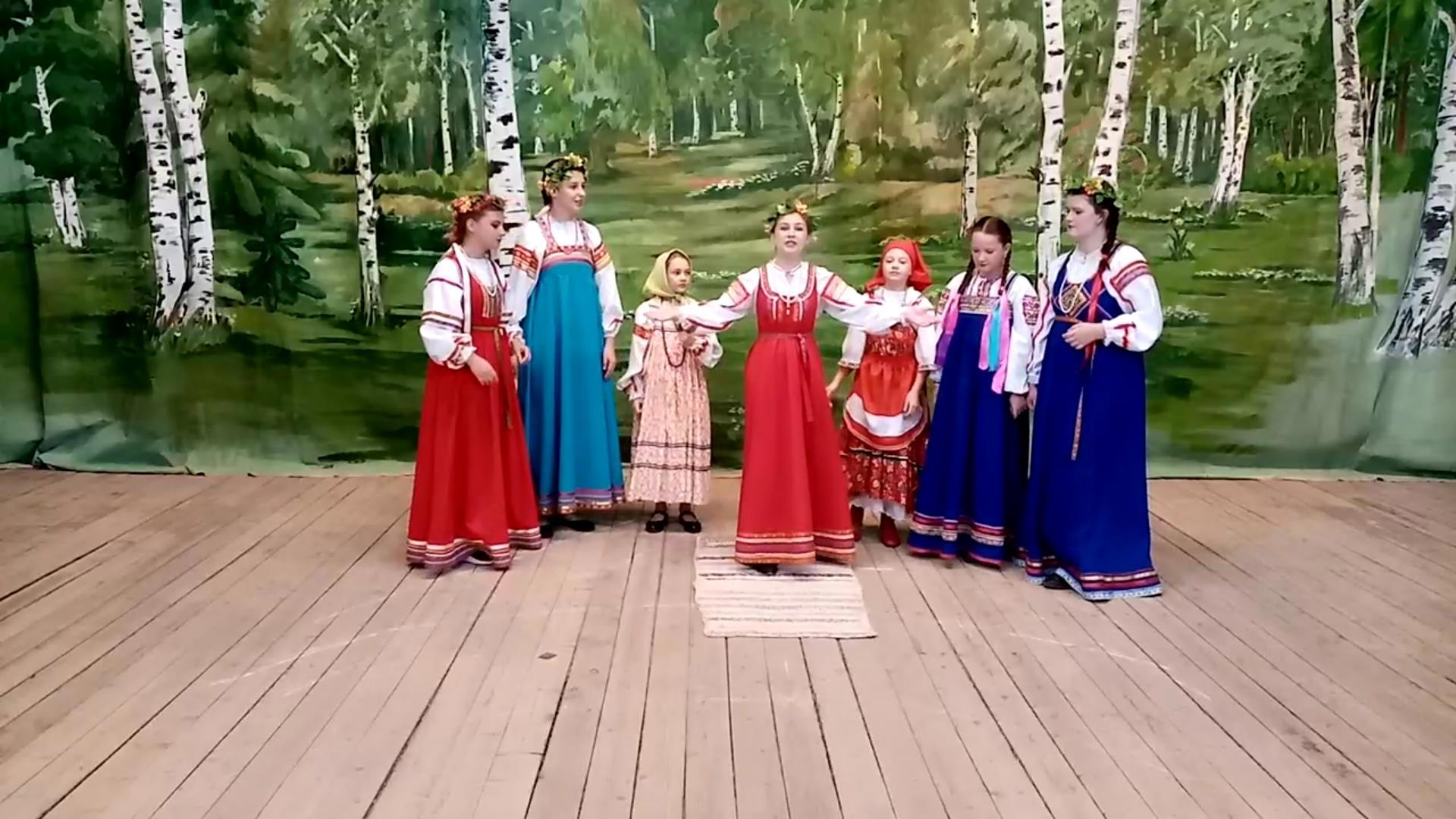 Заодно, наболтались и чаю напились. И видео я себе перекинула с последнего выступления фольклорного коллектива, где моя малая выступала. Вот она, в самом центре, в красном сарафане: