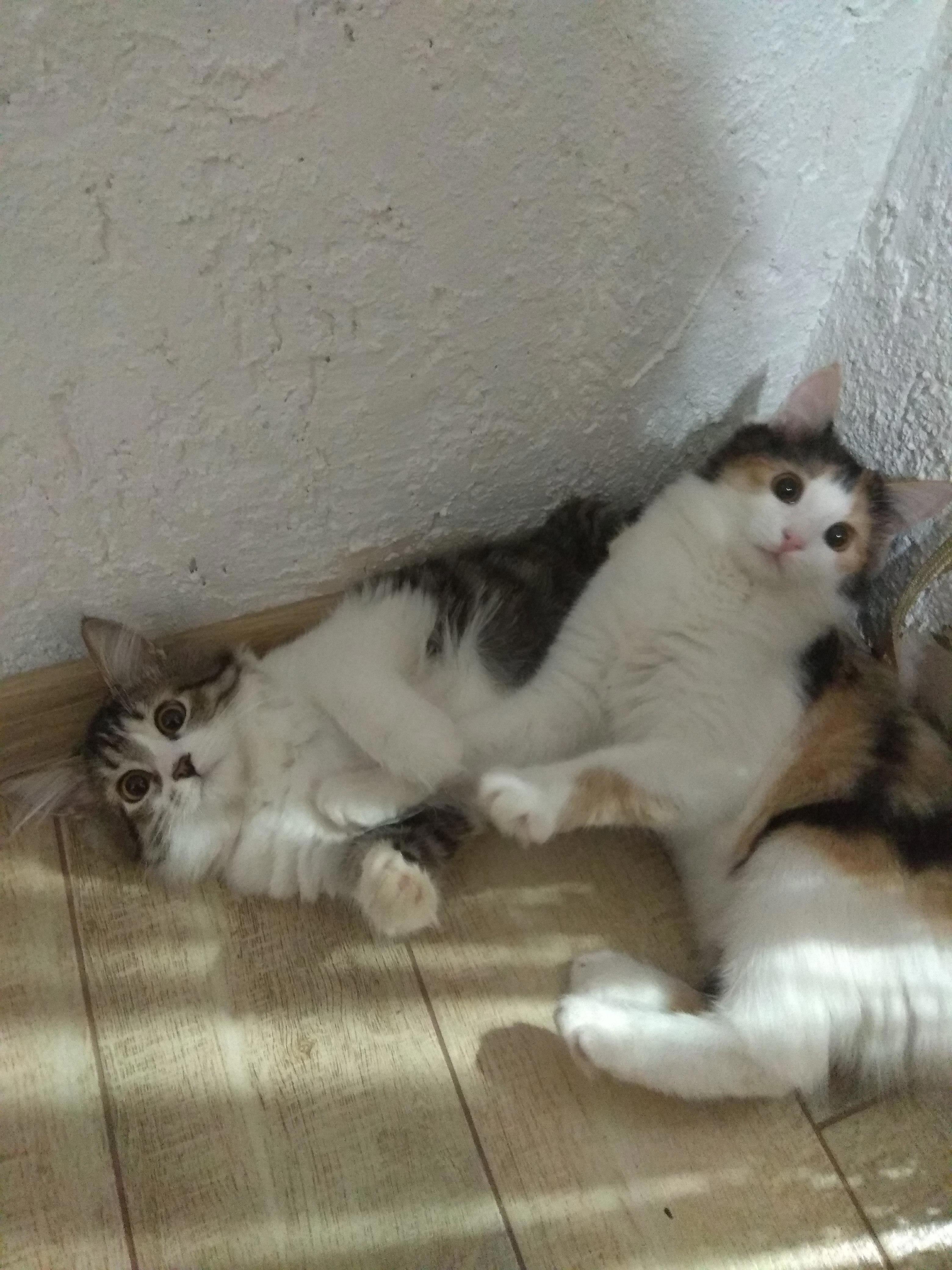 Из второй партии подкидышей она смогла отдать двух мальчиков, а вот двух девочек — нет. Так и остались они у нее. Уже теперь трехмесячные кошечки.