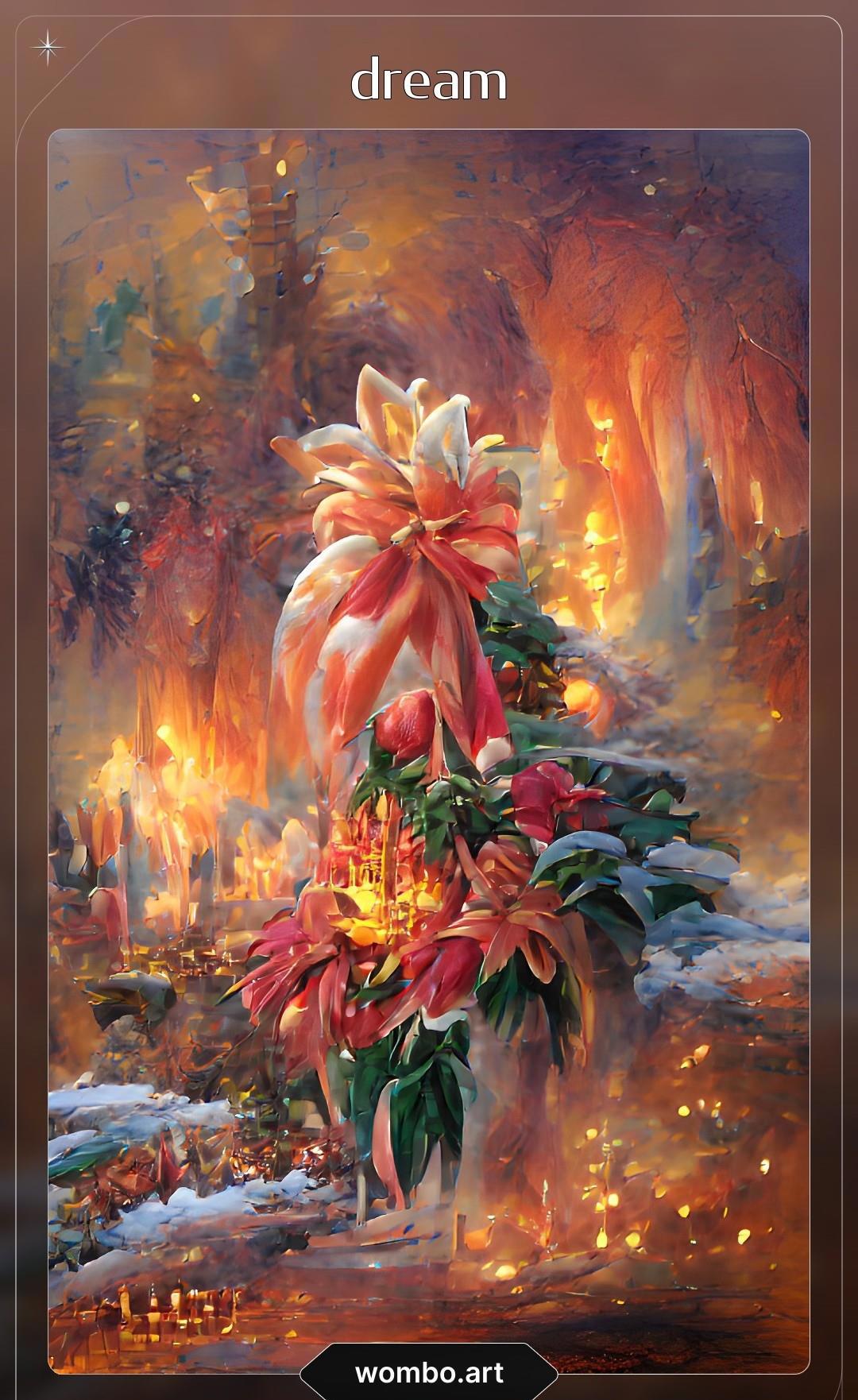 Все писали, что сеть плохо делает людей и животных, а хорошо — замки и цветы, поэтому начать я решила с огненного цветка. Это действительно оказалась очень удачная попытка, все варианты (с разными фильтрами) получились очень красивыми.