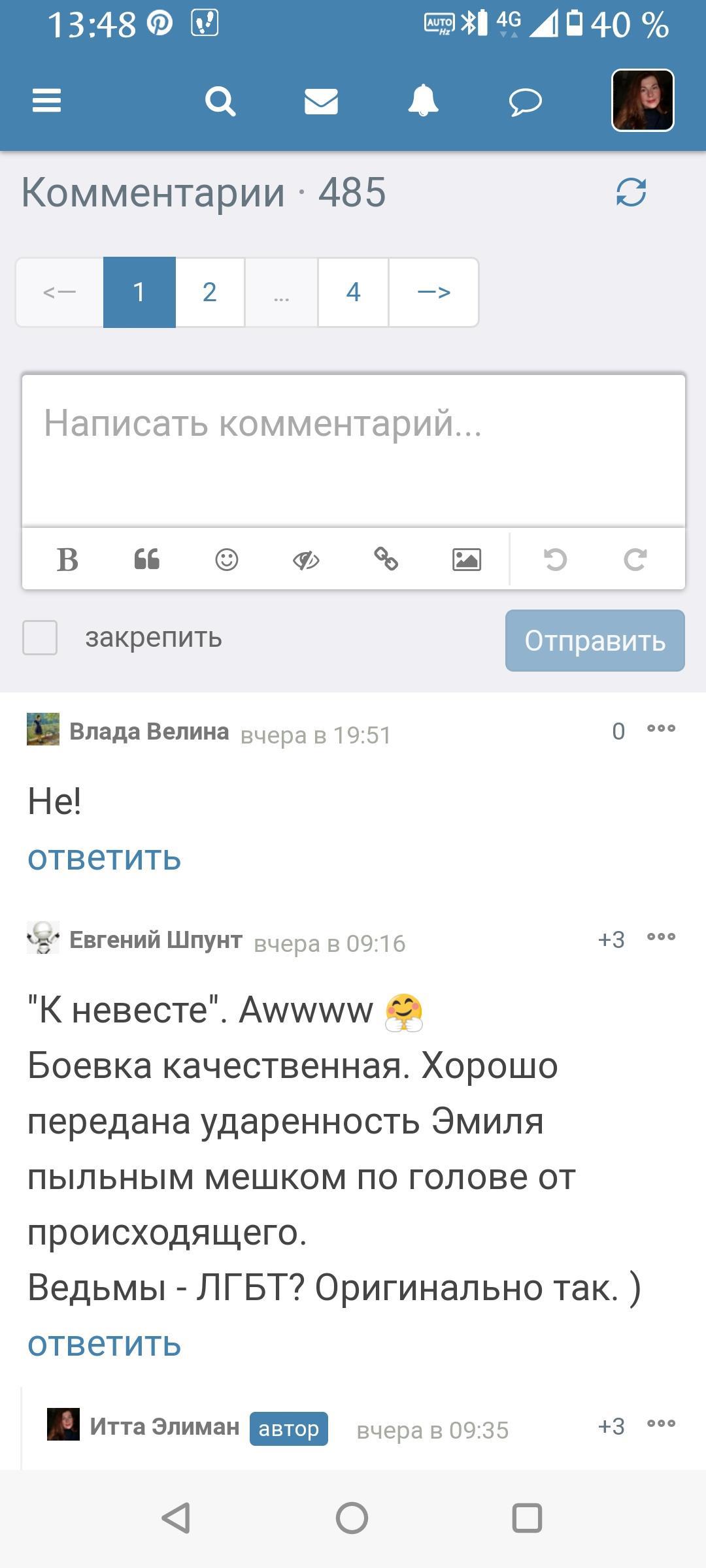Правда отзыв человек может оставить немногословный. Но мы же умеем читать между строк. И если скандалистка и матерщинница внезапно не нашла других слов кроме "Не!" То... Потихоньку вас почитывать стопудово будет.