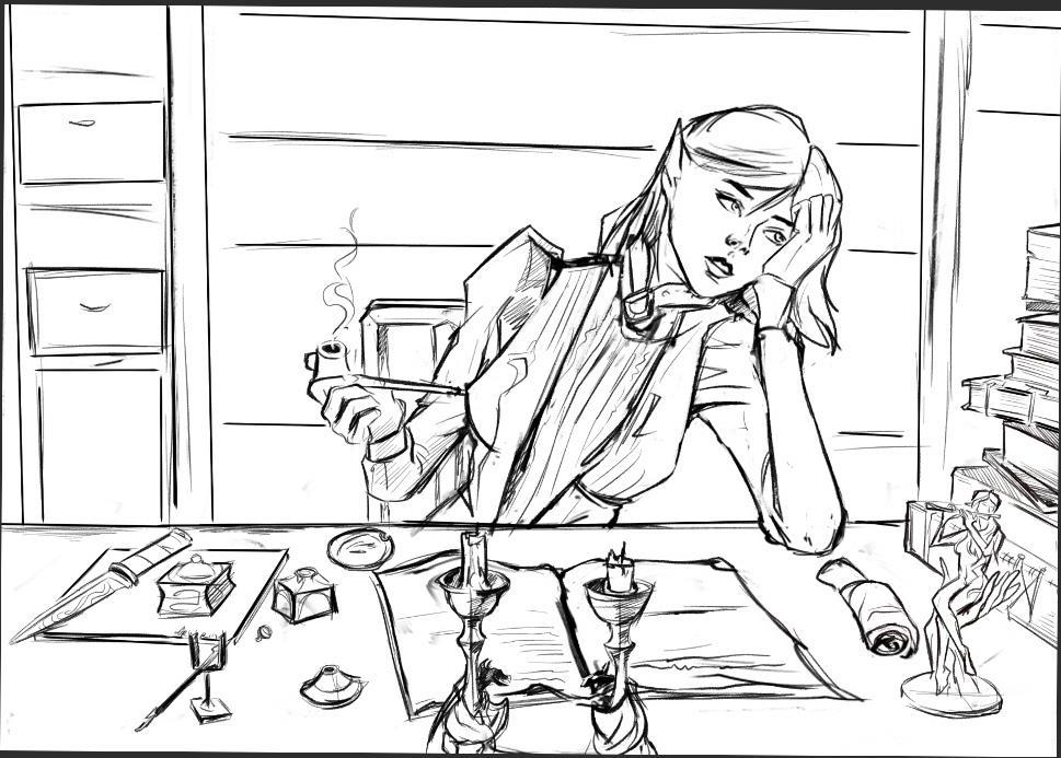 Ну а для тех, кто уже все прочёл – отдельный подарок. Пока это эскиз, надеюсь, вскоре станет полноценной иллюстрацией. Может даже и цветной, если распродажа хорошо пройдет