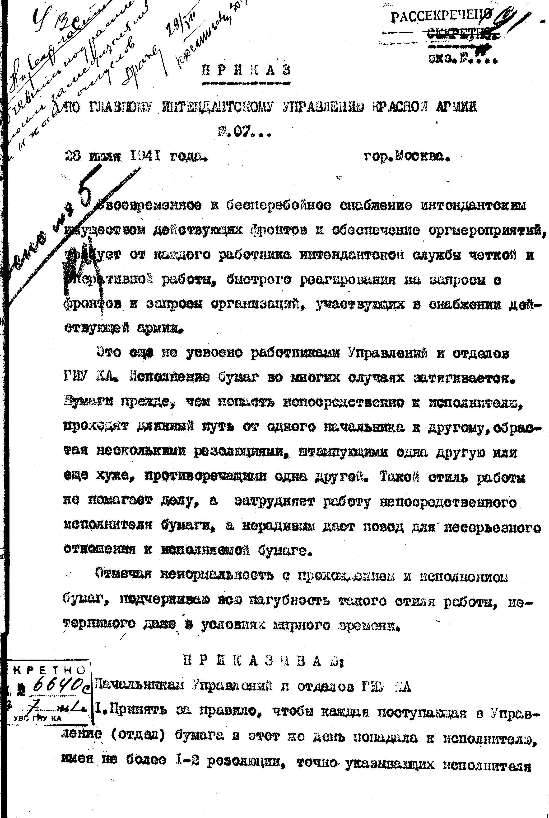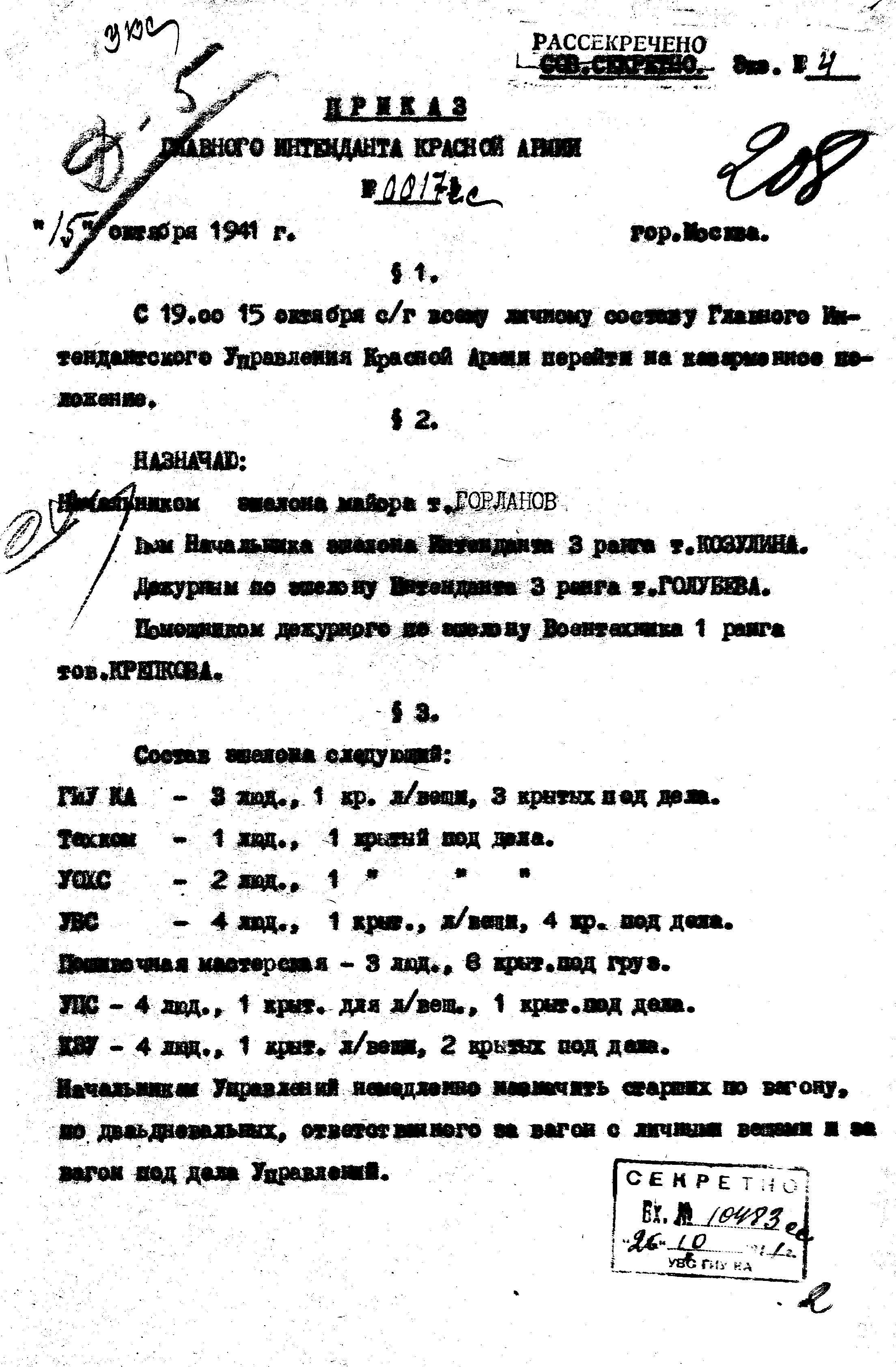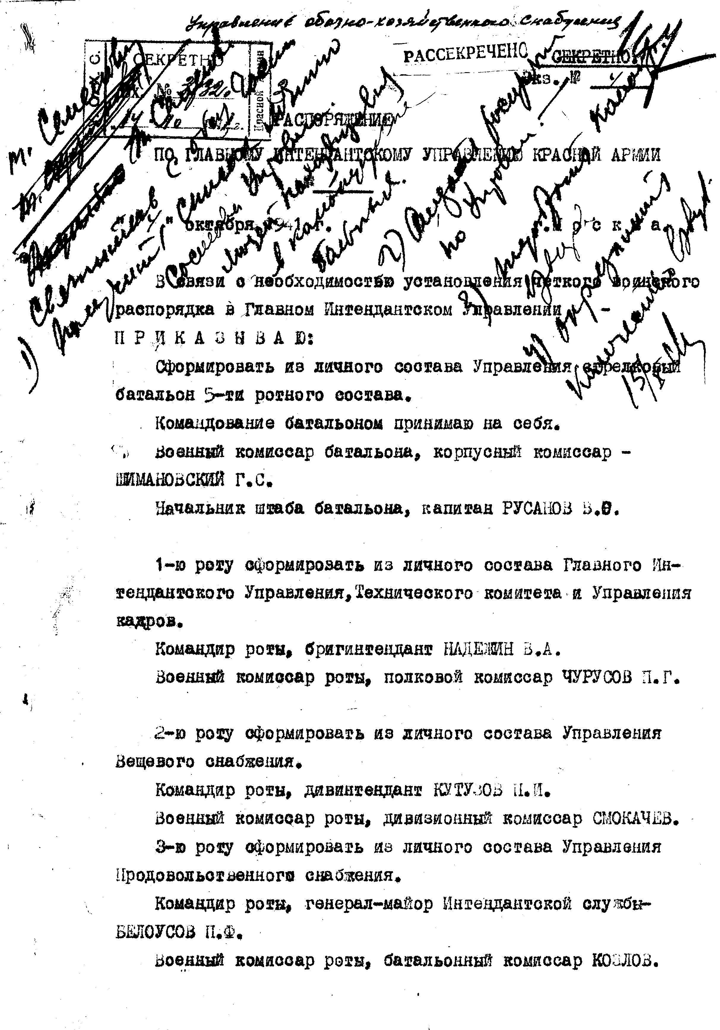 Предлагаю вашему вниманию приказ начальника Главного Интендантского управления Красной Армии, от 14 октября 1941 года[1].